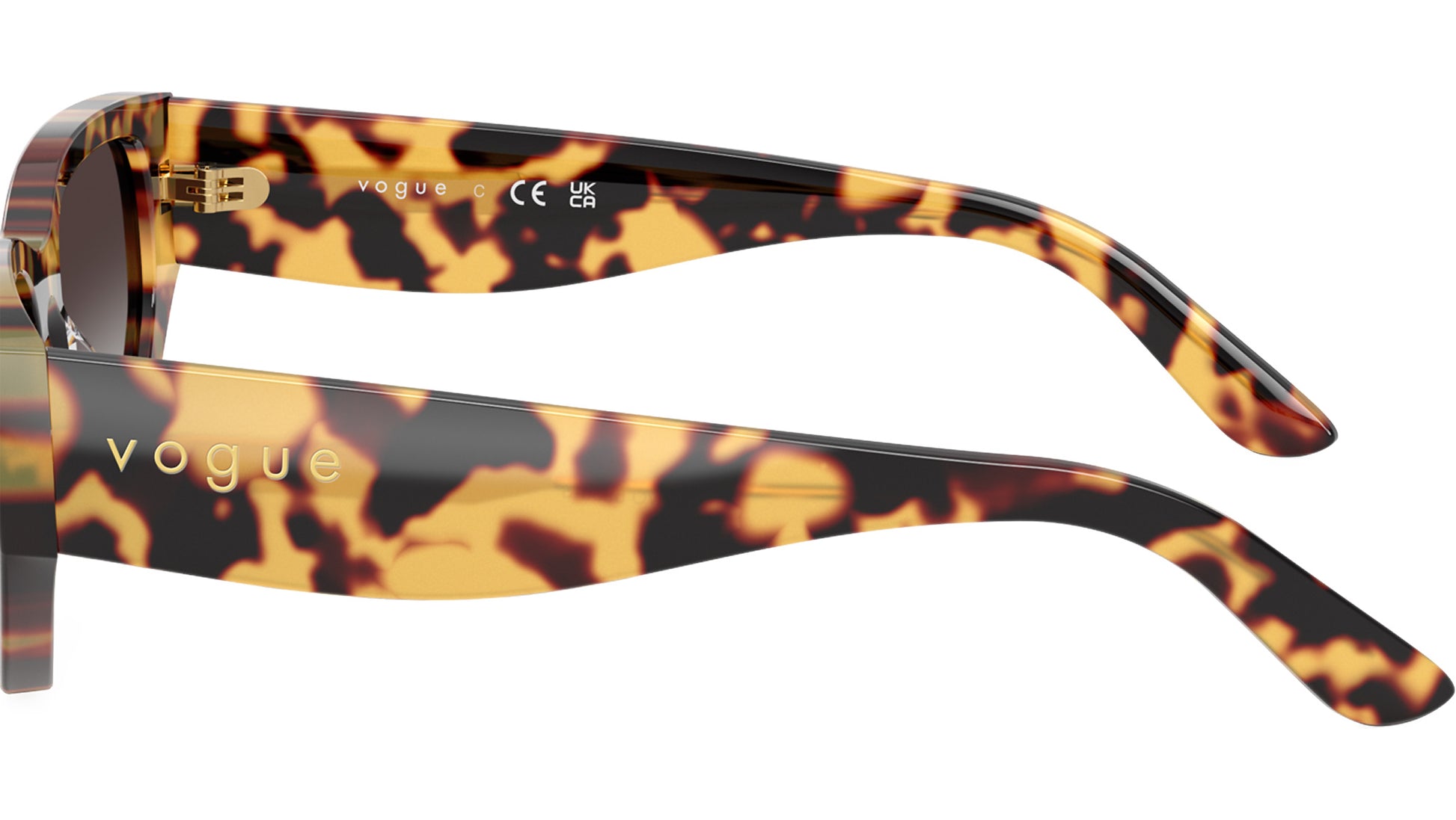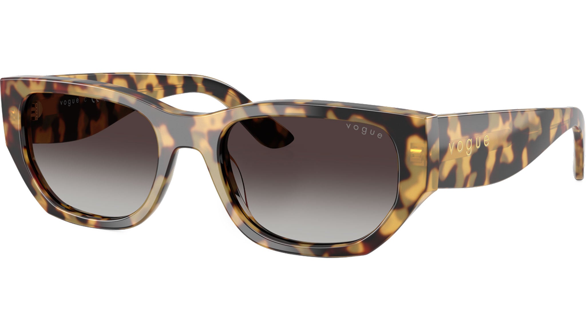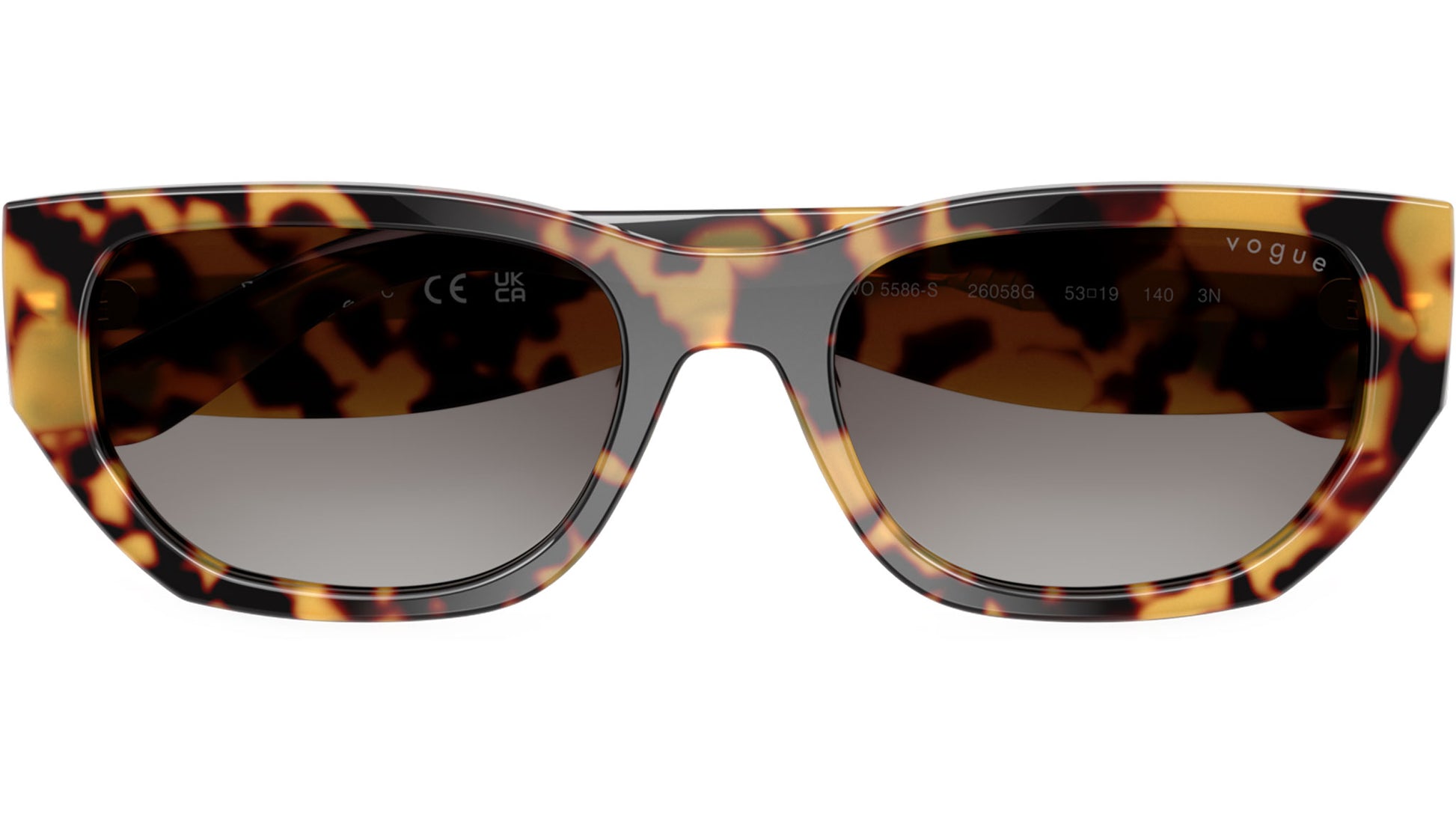 Vogue sunglasses for women model VO5586S 26058G featuring yellow tortoise acetate frame and grey gradient base 2 bio poliammide lenses. High bridge fit. Frame line: Forerunner. Brand code: 0VO5586S. Color code: 26058G. Authorised Vogue Eyewear Online Reseller. Your glasses will come including the original case and accessories and will be covered by 12 month global warranty.