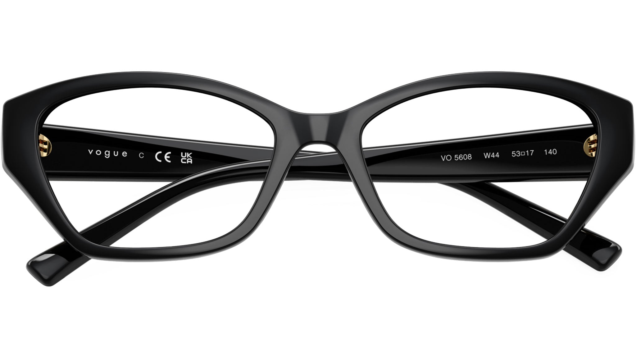 Vogue glasses for women model VO5608 W44 featuring black nylon frame and base 4 demo lens. High bridge fit. Frame line: Forerunner. Brand code: 0VO5608. Color code: W44. Authorised Vogue Eyewear Online Reseller. Your glasses will come including the original case and accessories and will be covered by 12 month global warranty.