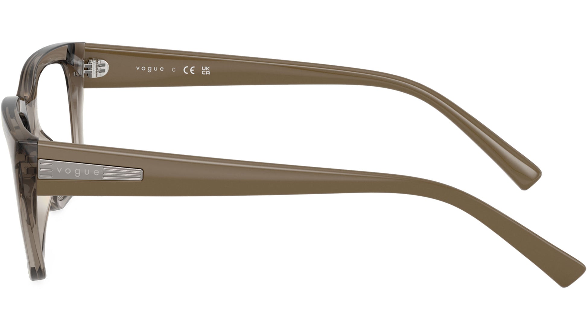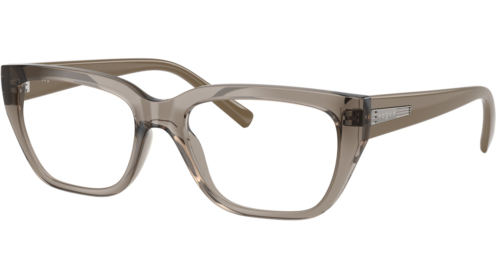 Vogue glasses for women model VO5609 3156 featuring transparent brown nylon frame and base 4 demo lens. High bridge fit. Frame line: Forerunner. Brand code: 0VO5609. Color code: 3156. Authorised Vogue Eyewear Online Reseller. Your glasses will come including the original case and accessories and will be covered by 12 month global warranty.