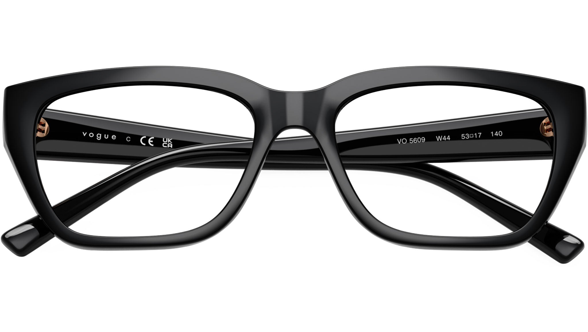 Vogue glasses for women model VO5609 W44 featuring black nylon frame and base 4 demo lens. High bridge fit. Frame line: Forerunner. Brand code: 0VO5609. Color code: W44. Authorised Vogue Eyewear Online Reseller. Your glasses will come including the original case and accessories and will be covered by 12 month global warranty.