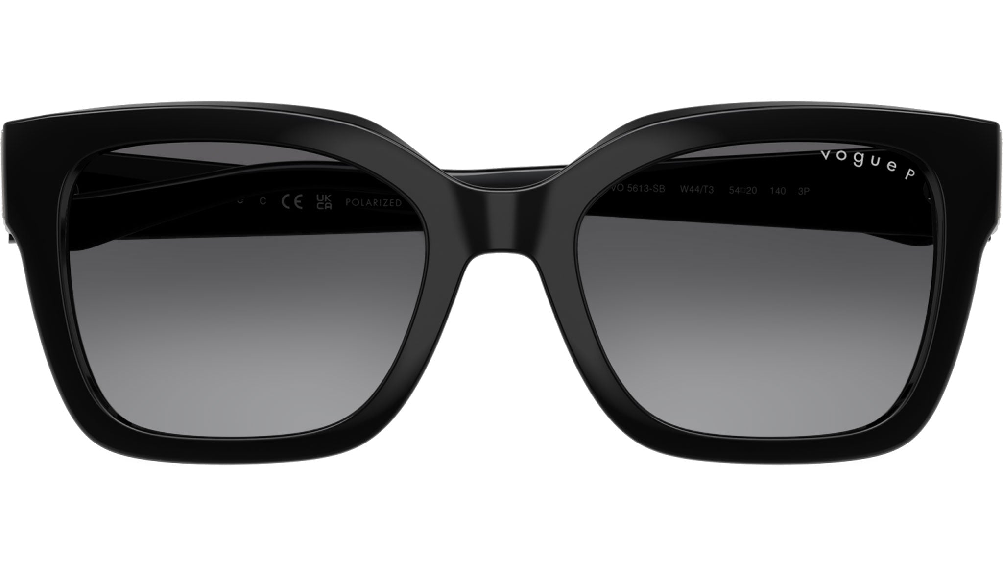 Vogue sunglasses for women model VO5613SB W44/T3 featuring black nylon frame and gradient grey polar base 6 polycarbonate lenses. High bridge fit. Frame line: In Vogue. Brand code: 0VO5613SB. Color code: W44/T3. Authorised Vogue Eyewear Online Reseller. Your glasses will come including the original case and accessories and will be covered by 12 month global warranty.