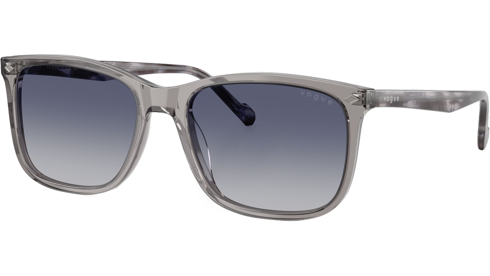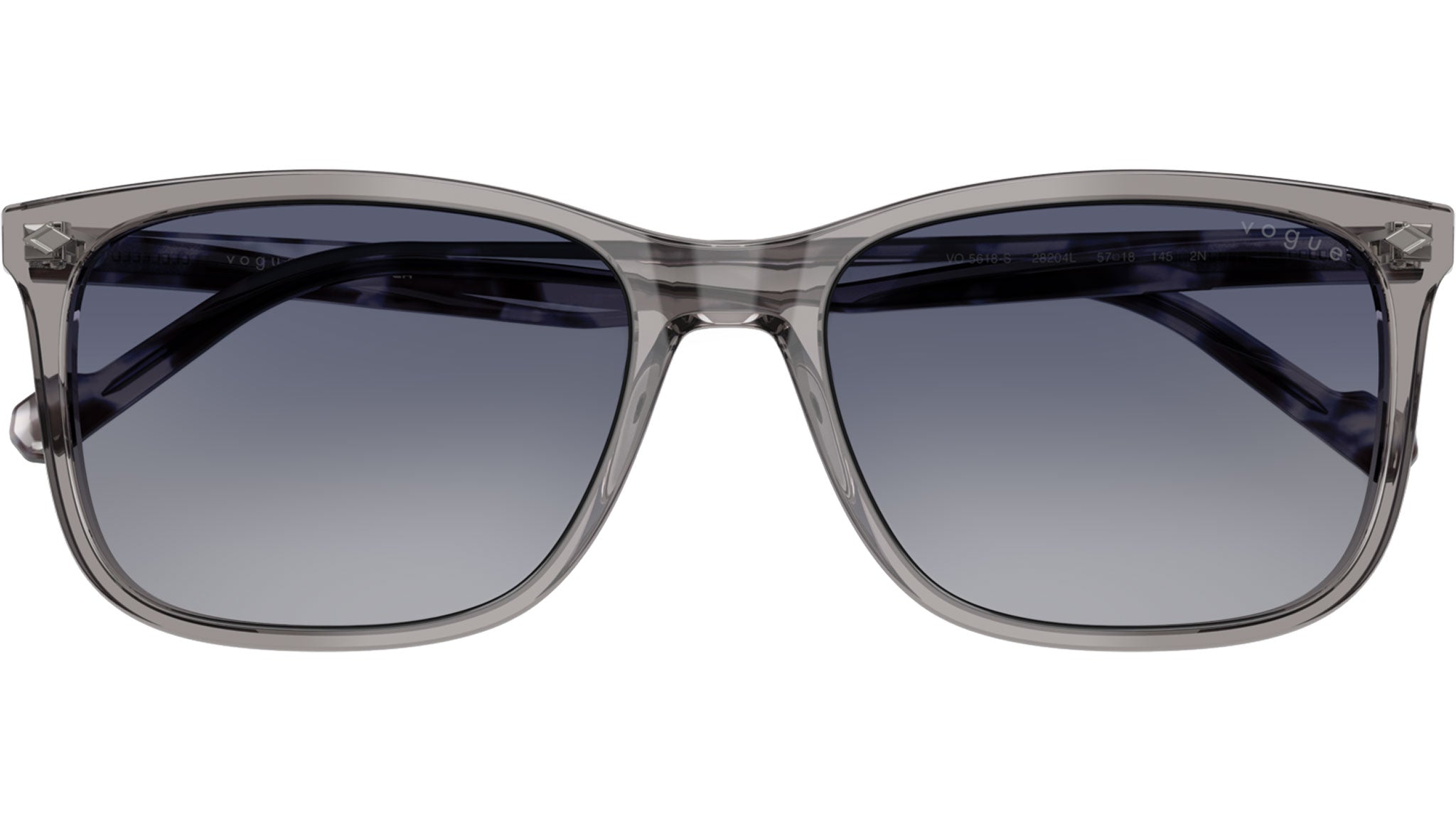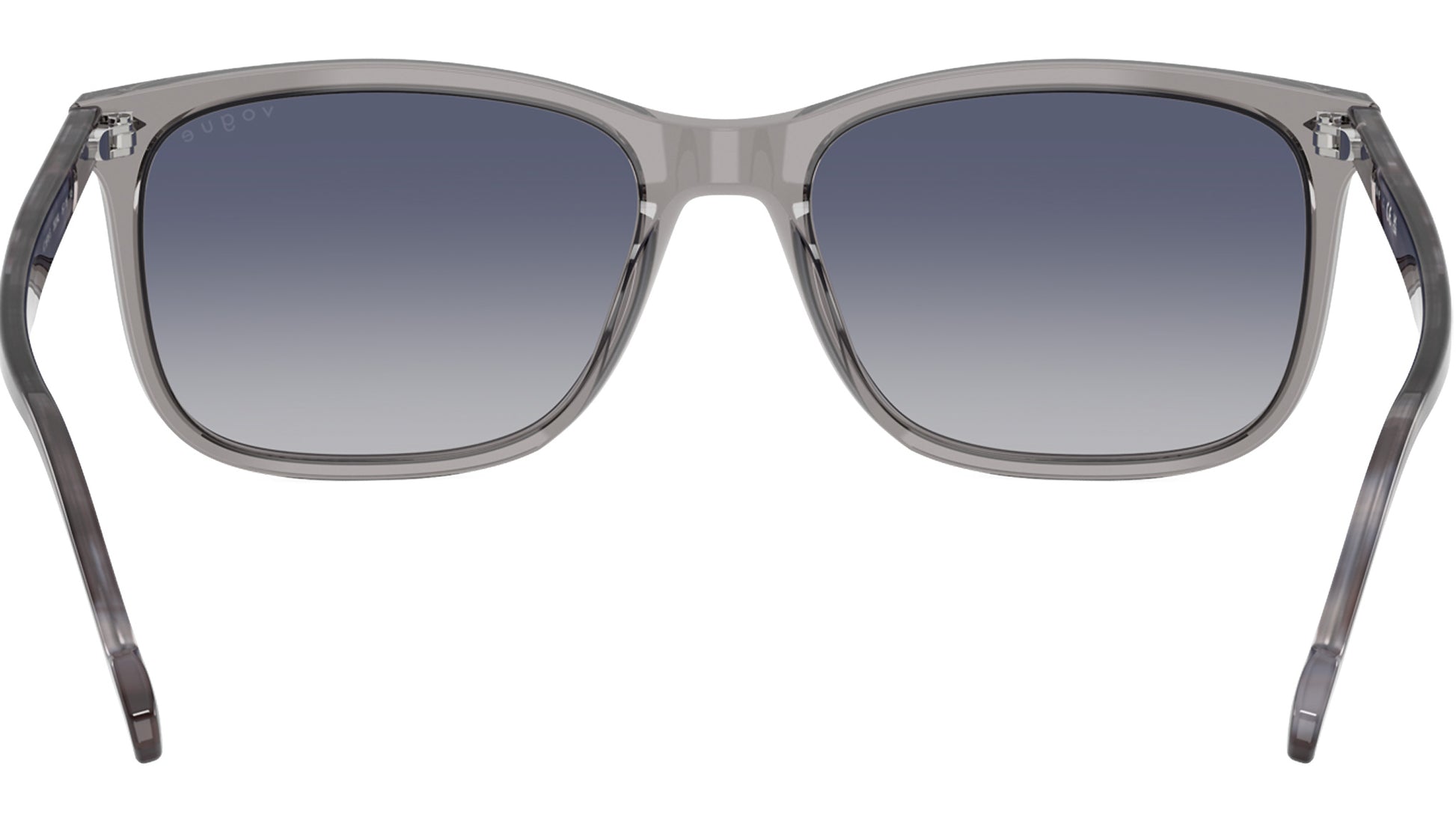 Vogue sunglasses for men model VO5618S 28204L featuring transparent grey acetate frame and grey gradient blue base 4 bio poliammide lenses. High bridge fit. Frame line: Man. Brand code: 0VO5618S. Color code: 28204L. Authorised Vogue Eyewear Online Reseller. Your glasses will come including the original case and accessories and will be covered by 12 month global warranty.