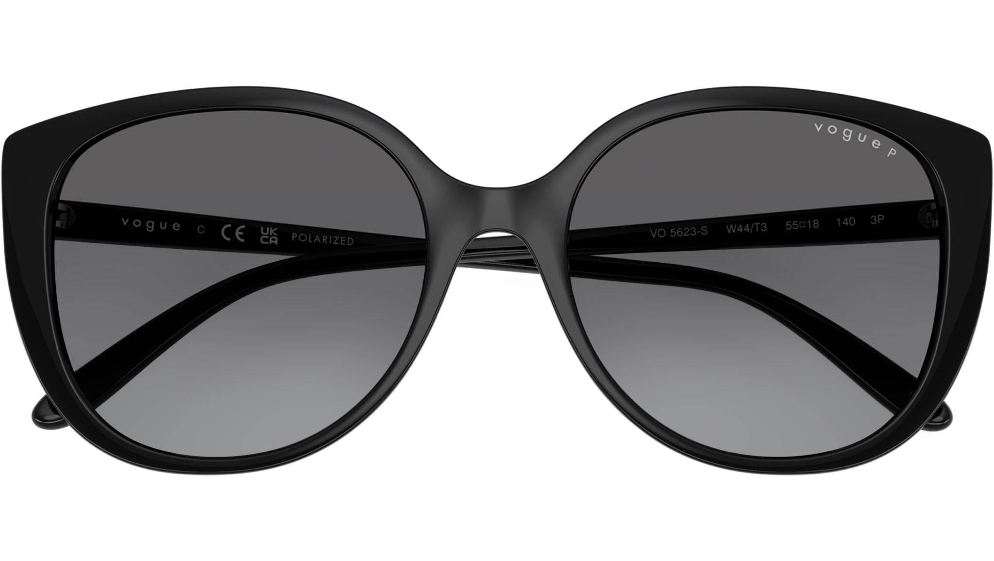 Vogue sunglasses for women model VO5623S W44/T3 featuring black nylon frame and gradient grey polar base 6 polycarbonate lenses. High bridge fit. Frame line: Evergreen. Brand code: 0VO5623S. Color code: W44/T3. Authorised Vogue Eyewear Online Reseller. Your glasses will come including the original case and accessories and will be covered by 12 month global warranty.