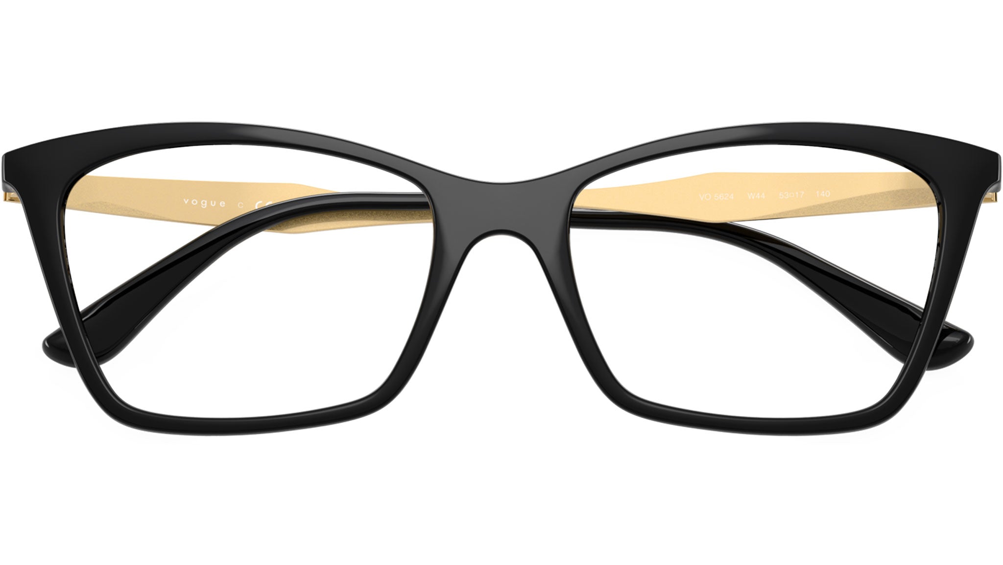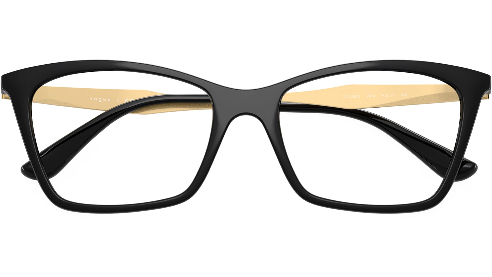 Vogue glasses for women model VO5624 W44 featuring black nylon frame and base 4 demo lens. High bridge fit. Frame line: In Vogue. Brand code: 0VO5624. Color code: W44. Authorised Vogue Eyewear Online Reseller. Your glasses will come including the original case and accessories and will be covered by 12 month global warranty.