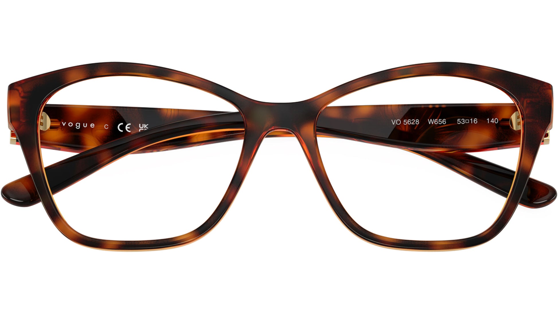 Vogue glasses for women model VO5628 W656 featuring dark havana nylon frame and base 4 demo lens. High bridge fit. Frame line: In Vogue. Brand code: 0VO5628. Color code: W656. Authorised Vogue Eyewear Online Reseller. Your glasses will come including the original case and accessories and will be covered by 12 month global warranty.