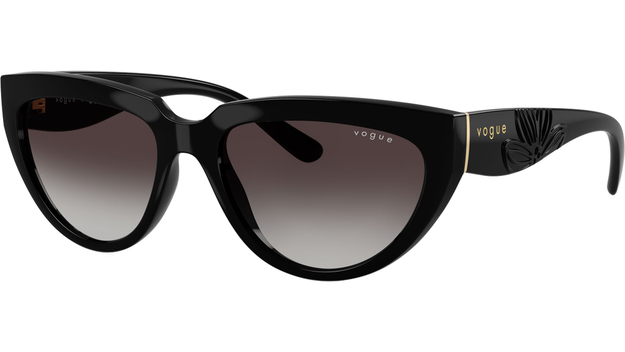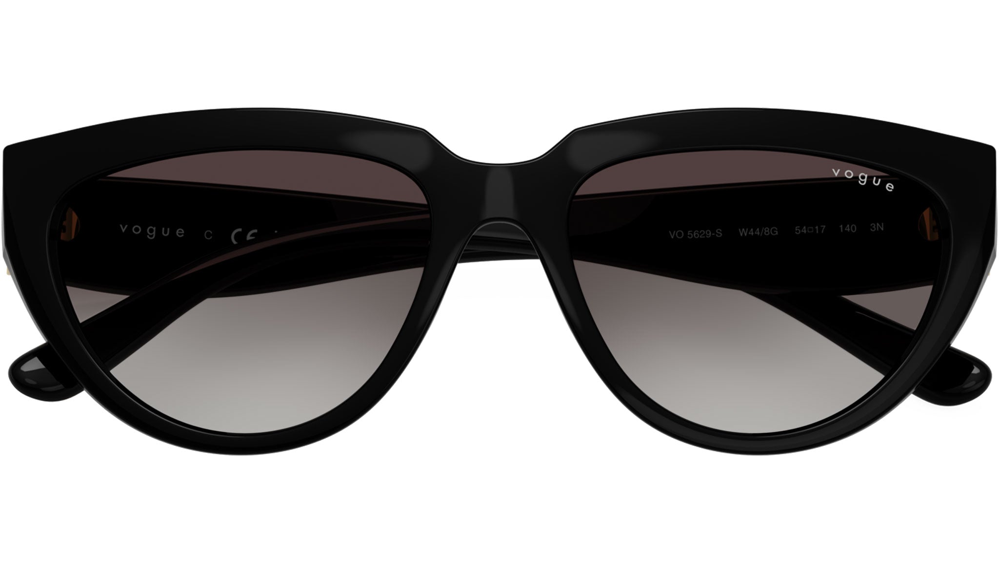 Vogue sunglasses for women model VO5629S W44/8G featuring black nylon frame and grey gradient base 6 decentered polycarbonate lenses. High bridge fit. Frame line: In Vogue. Brand code: 0VO5629S. Color code: W44/8G. Authorised Vogue Eyewear Online Reseller. Your glasses will come including the original case and accessories and will be covered by 12 month global warranty.
