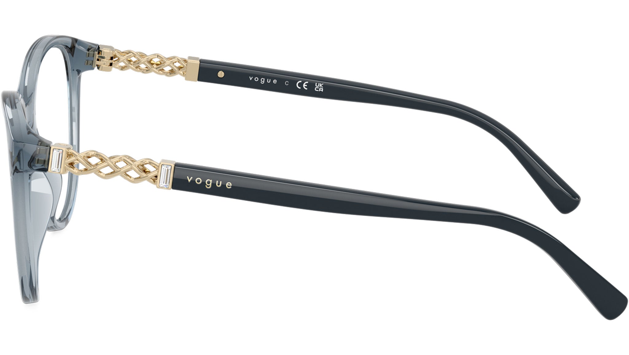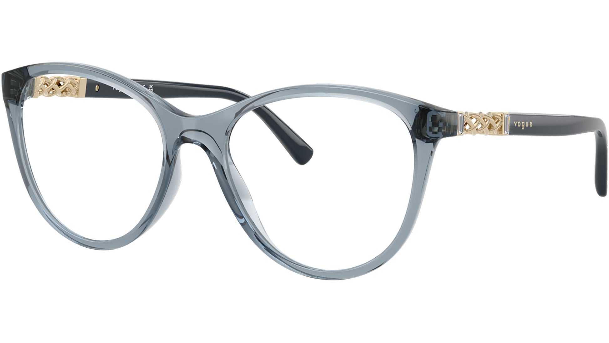 Vogue glasses for women model VO5631B 2966 featuring transparent light blue nylon frame and base 4 demo lens. High bridge fit. Frame line: Evergreen. Brand code: 0VO5631B. Color code: 2966. Authorised Vogue Eyewear Online Reseller. Your glasses will come including the original case and accessories and will be covered by 12 month global warranty.