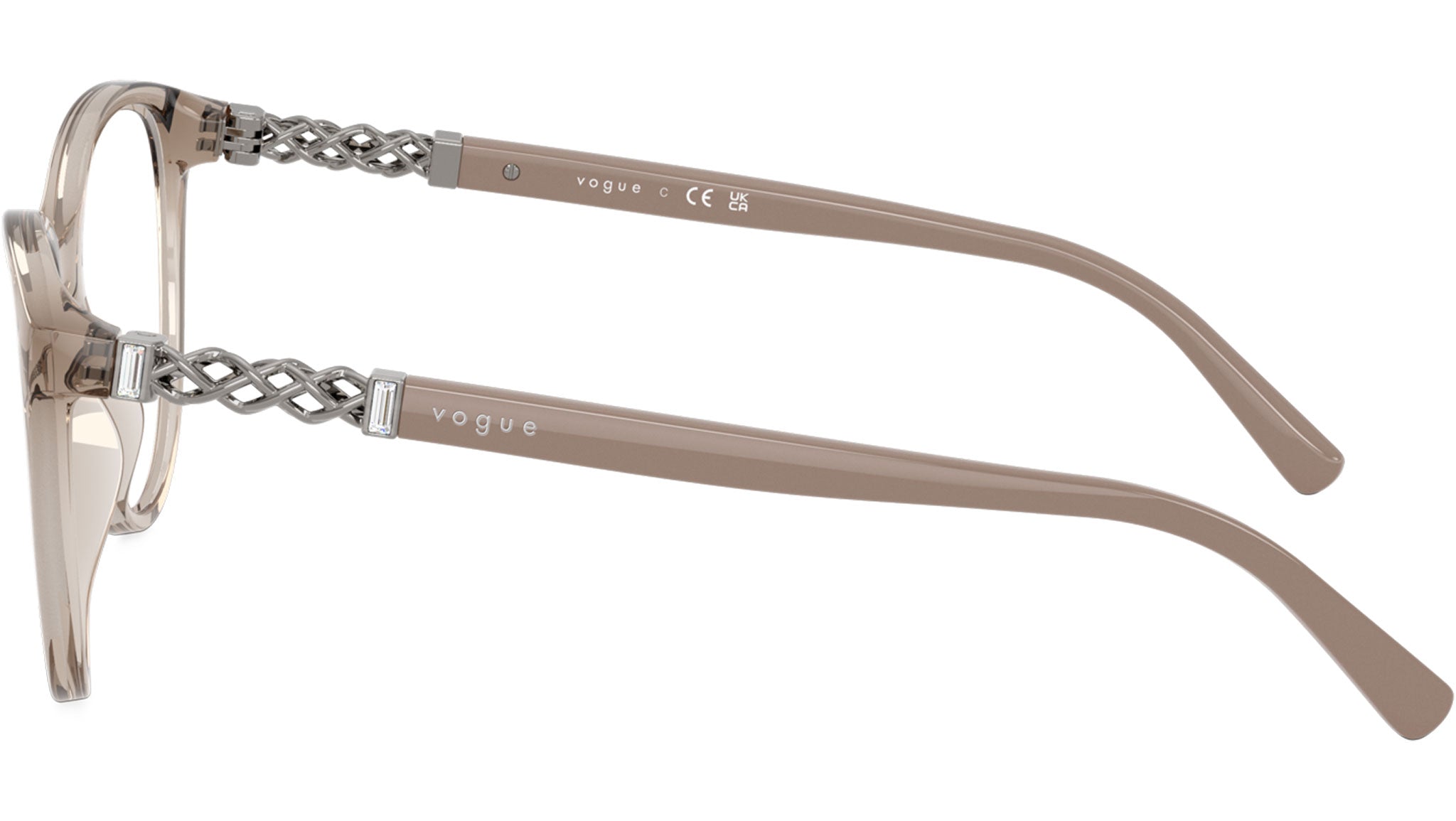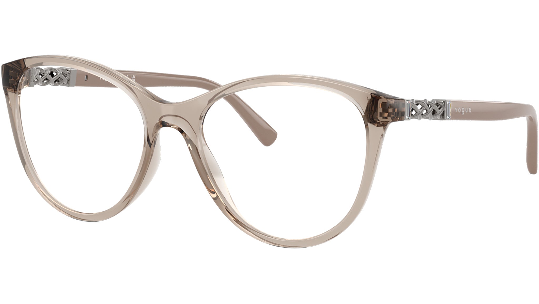 Vogue glasses for women model VO5631B 2990 featuring transparent caramel nylon frame and base 4 demo lens. High bridge fit. Frame line: Evergreen. Brand code: 0VO5631B. Color code: 2990. Authorised Vogue Eyewear Online Reseller. Your glasses will come including the original case and accessories and will be covered by 12 month global warranty.