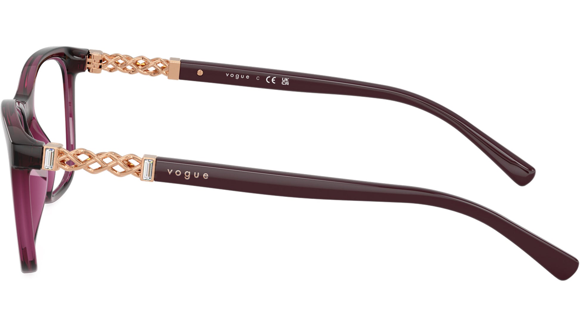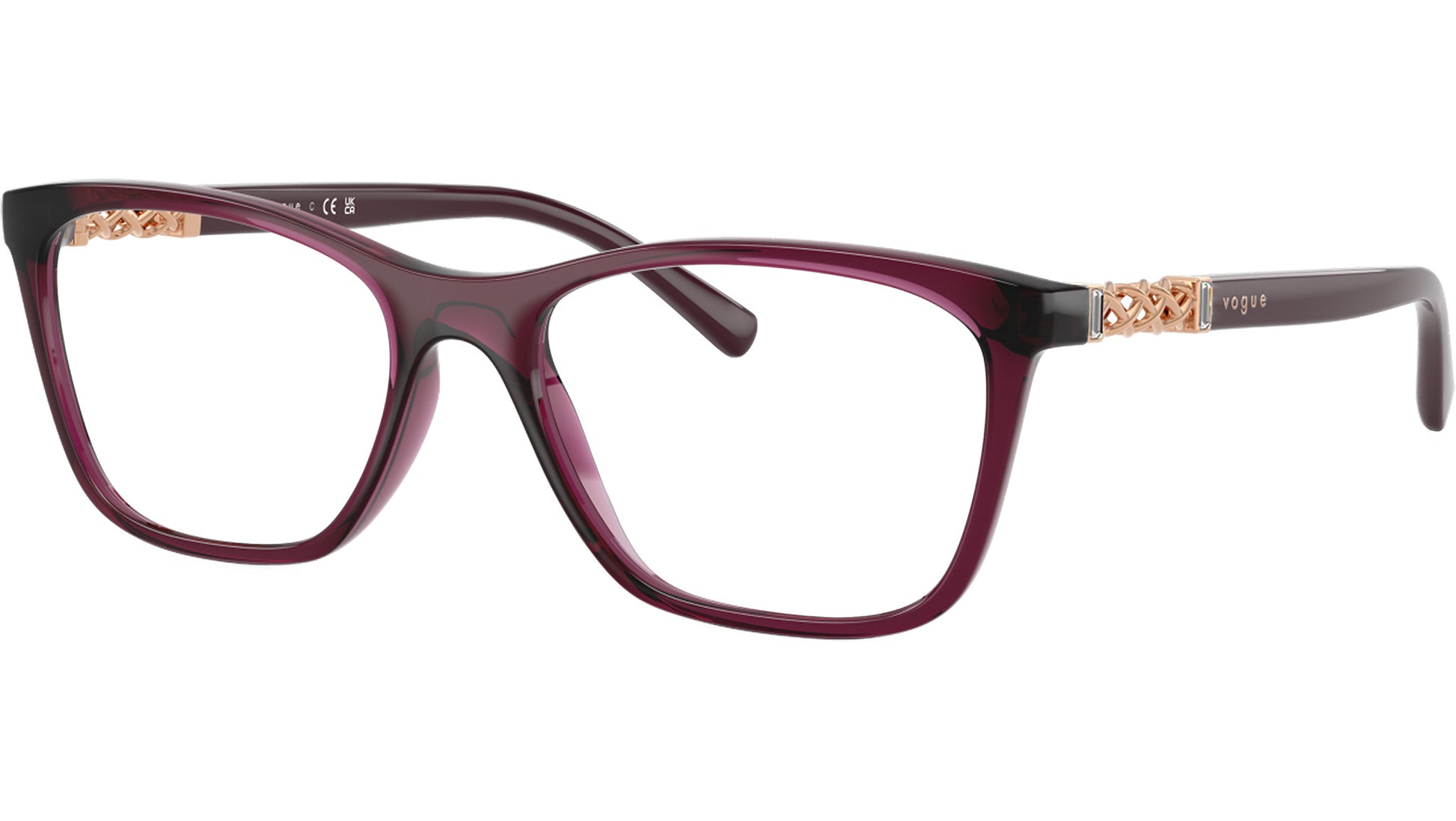 Vogue glasses for women model VO5632B 2989 featuring transparent cherry nylon frame and base 4 demo lens. High bridge fit. Frame line: Evergreen. Brand code: 0VO5632B. Color code: 2989. Authorised Vogue Eyewear Online Reseller. Your glasses will come including the original case and accessories and will be covered by 12 month global warranty.