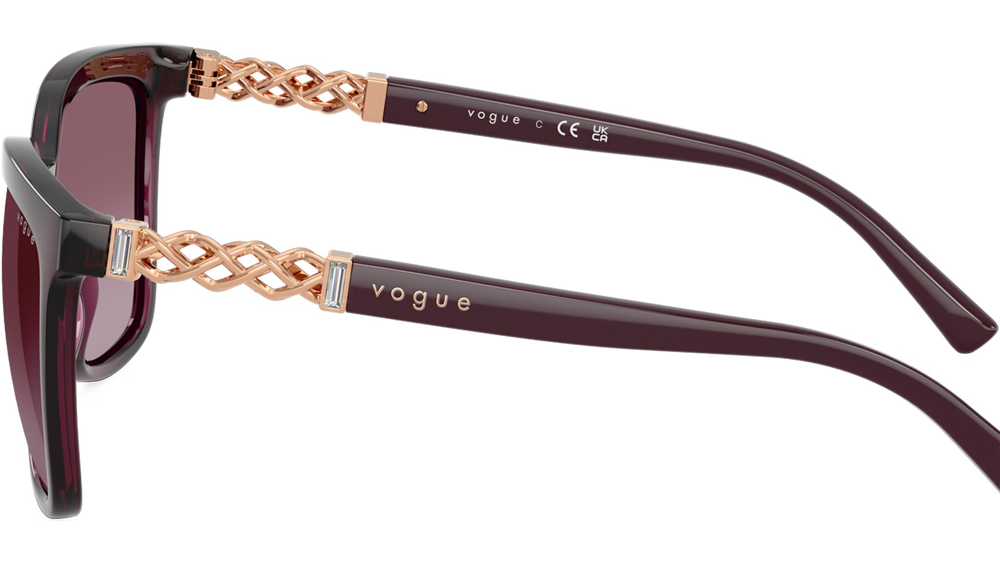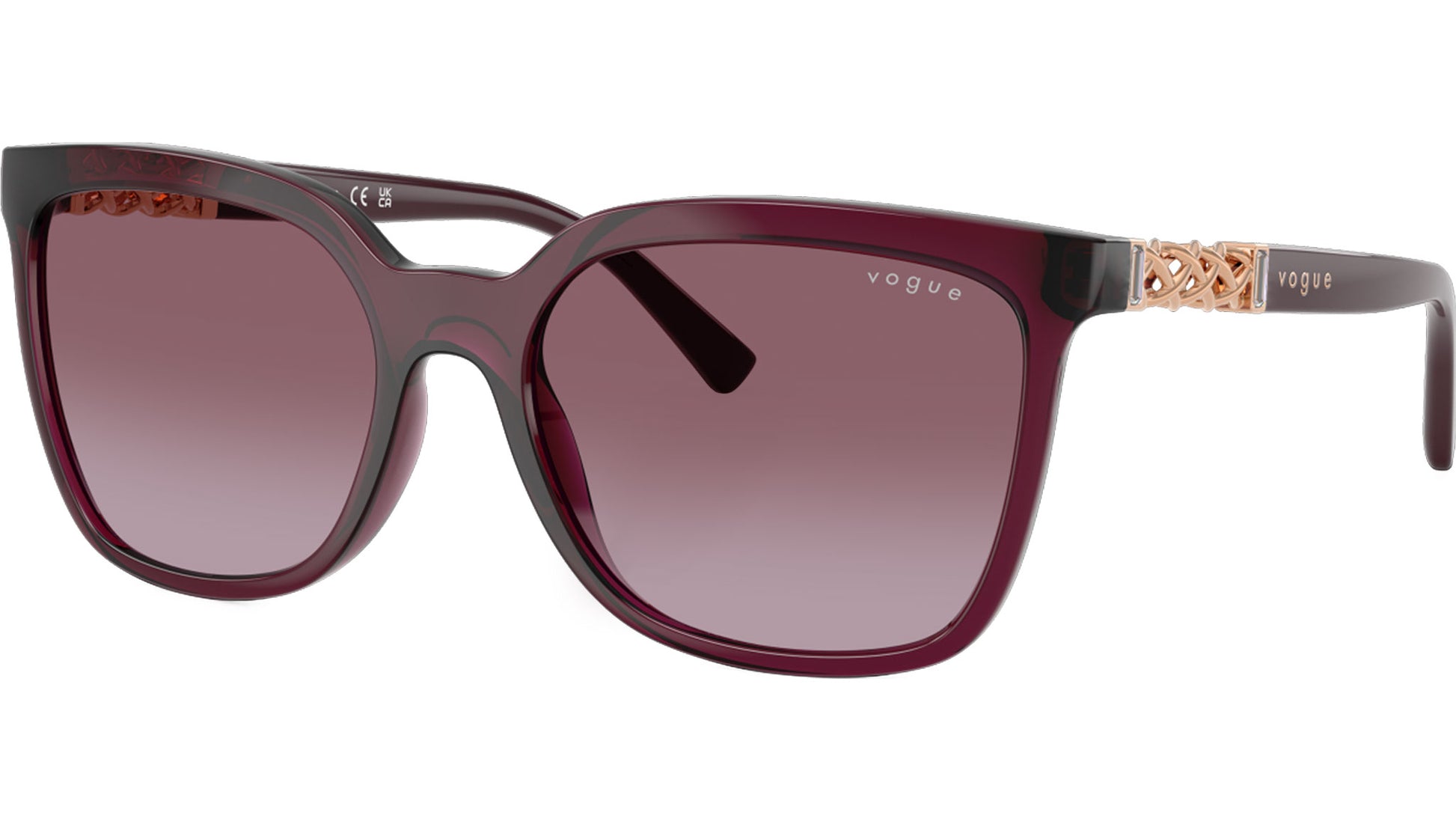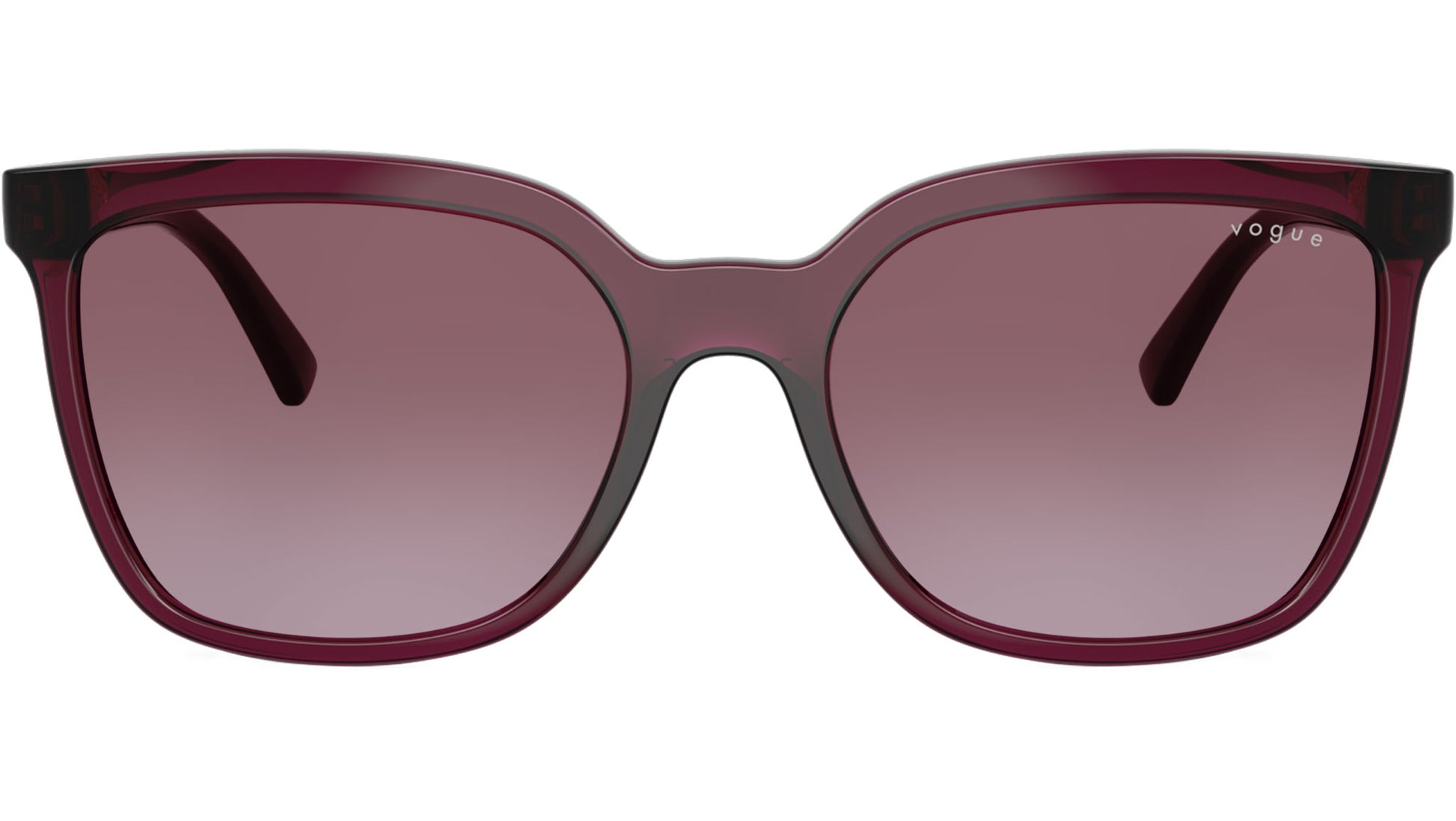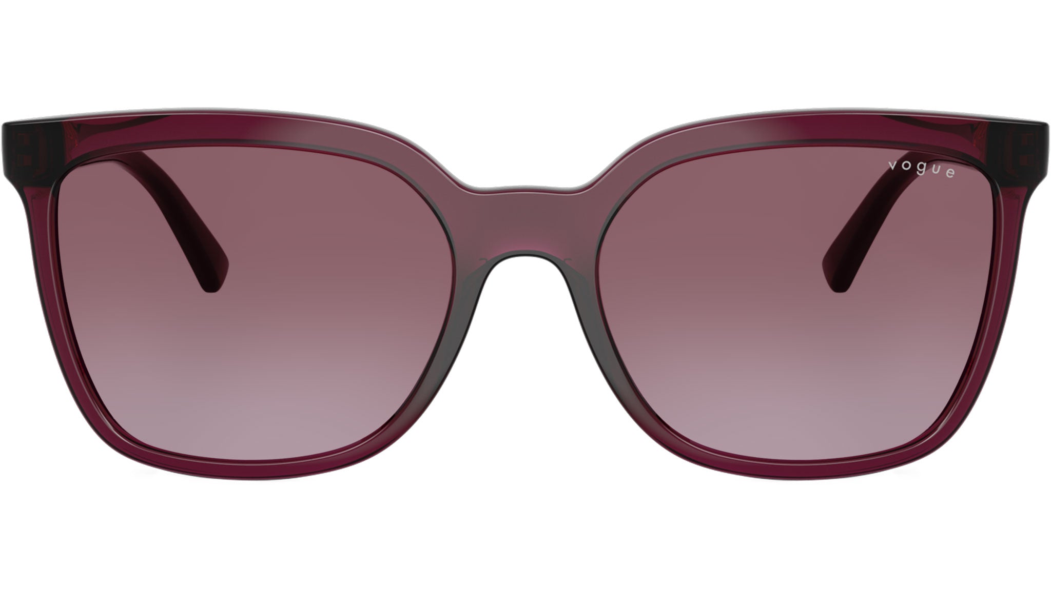 Vogue sunglasses for women model VO5633SB 29898H featuring transparent cherry nylon frame and gradient violet base 6 polycarbonate lenses. High bridge fit. Frame line: Evergreen. Brand code: 0VO5633SB. Color code: 29898H. Authorised Vogue Eyewear Online Reseller. Your glasses will come including the original case and accessories and will be covered by 12 month global warranty.