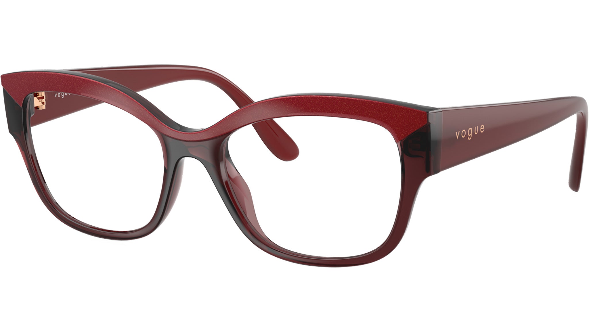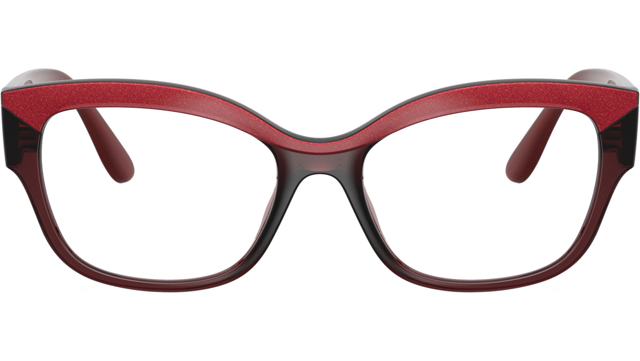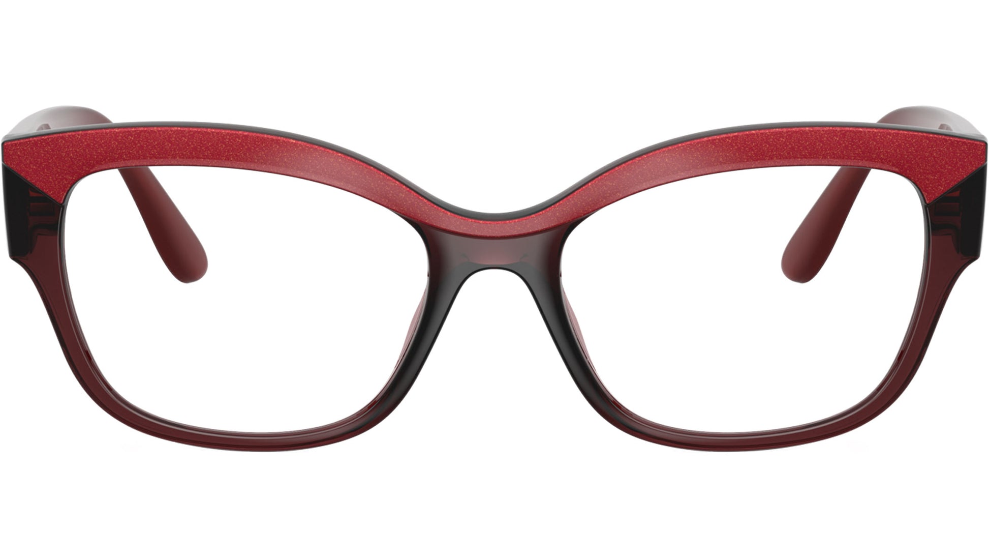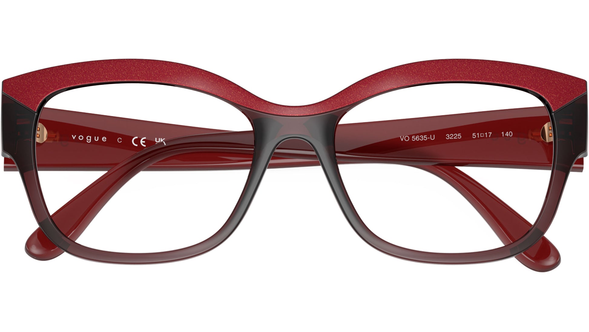 Vogue glasses for women model VO5635U 3225 featuring top red / transparent red nylon frame and base 4 demo lens. Universal fit. Frame line: Forerunner. Brand code: 0VO5635U. Color code: 3225. Authorised Vogue Eyewear Online Reseller. Your glasses will come including the original case and accessories and will be covered by 12 month global warranty.