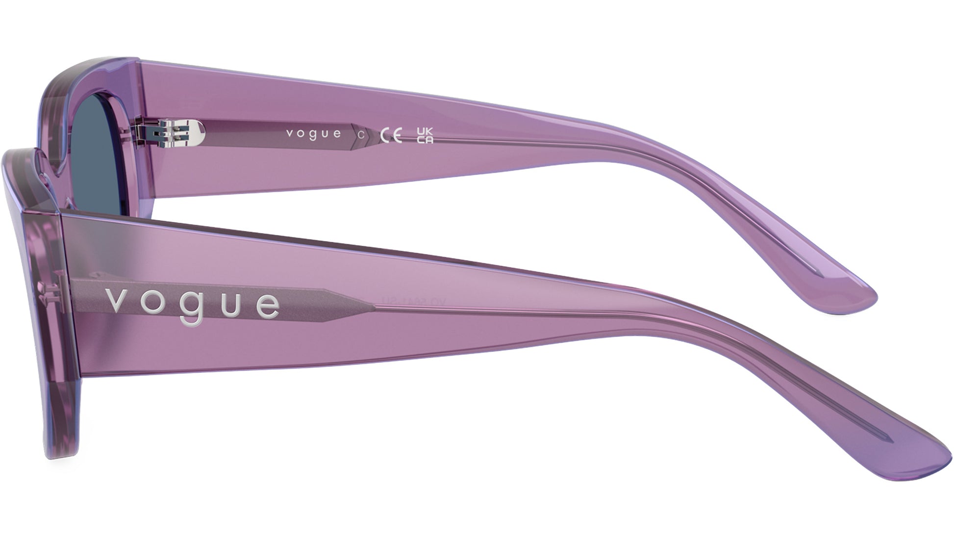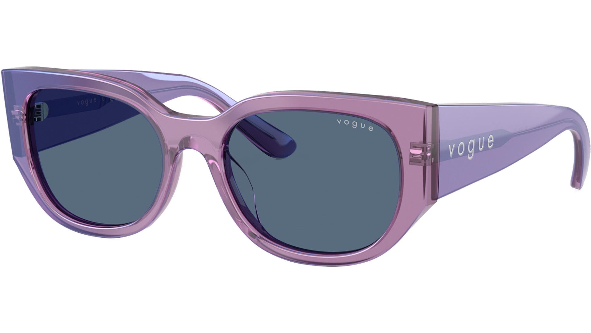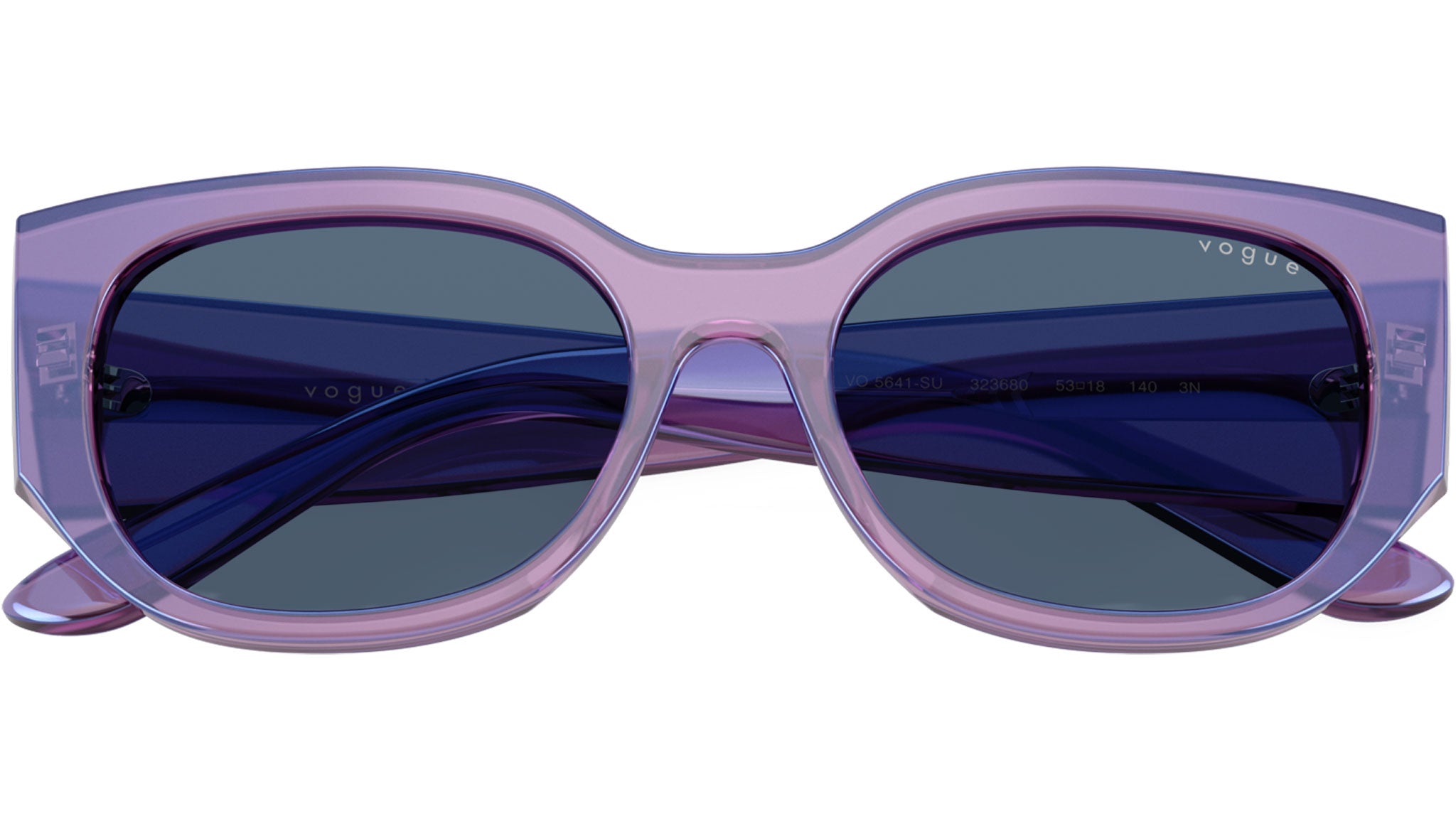 Vogue sunglasses for women model VO5641SU 323680 featuring transparent pearl purple acetate frame and dark blue base 2 bio poliammide lenses. Universal fit. Frame line: Forerunner. Brand code: 0VO5641SU. Color code: 323680. Authorised Vogue Eyewear Online Reseller. Your glasses will come including the original case and accessories and will be covered by 12 month global warranty.