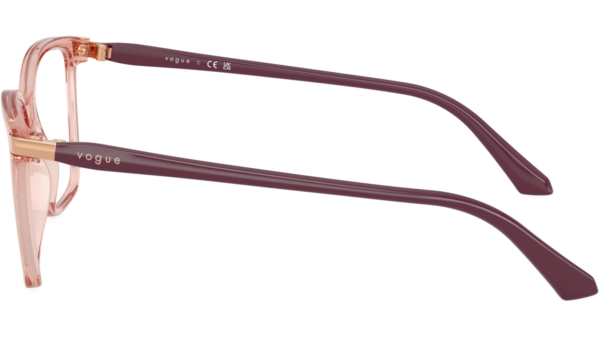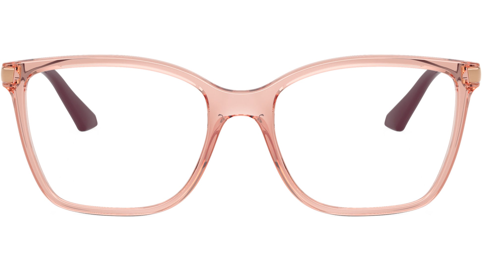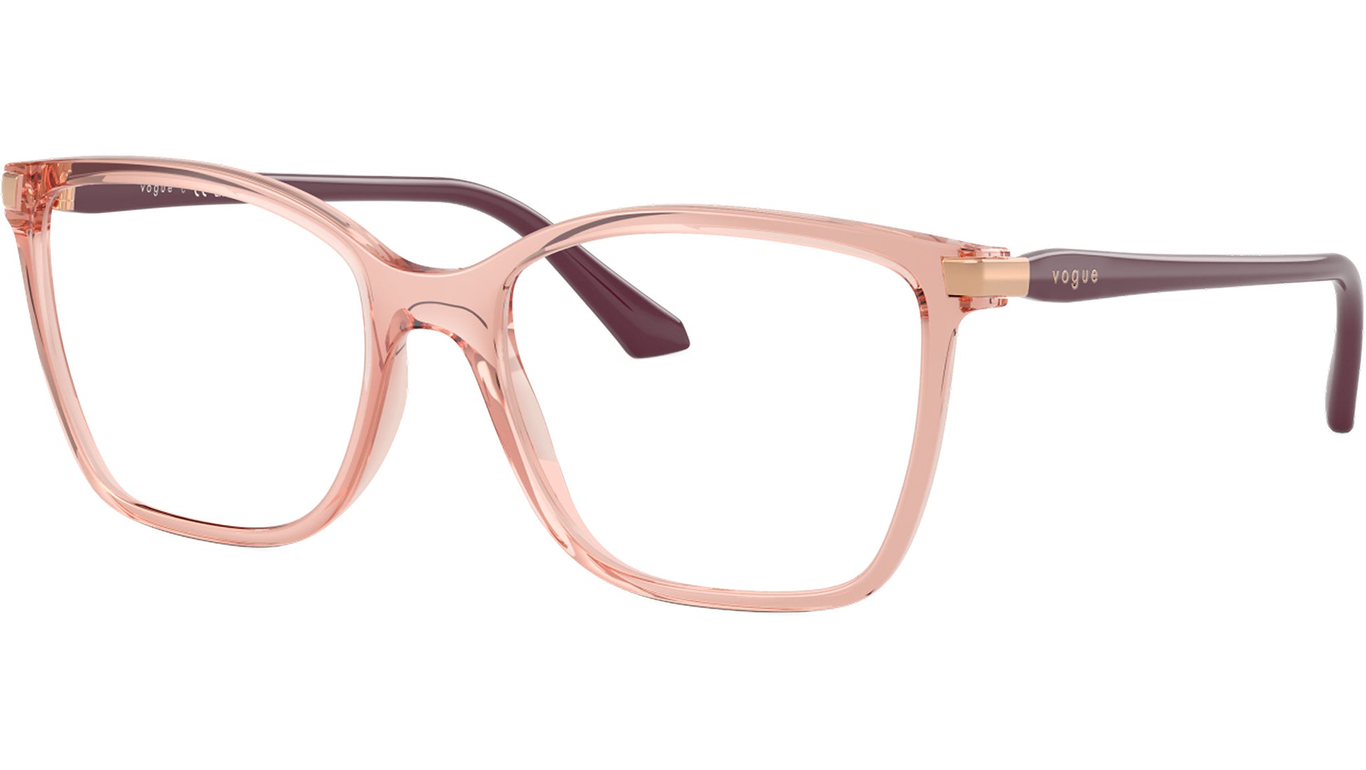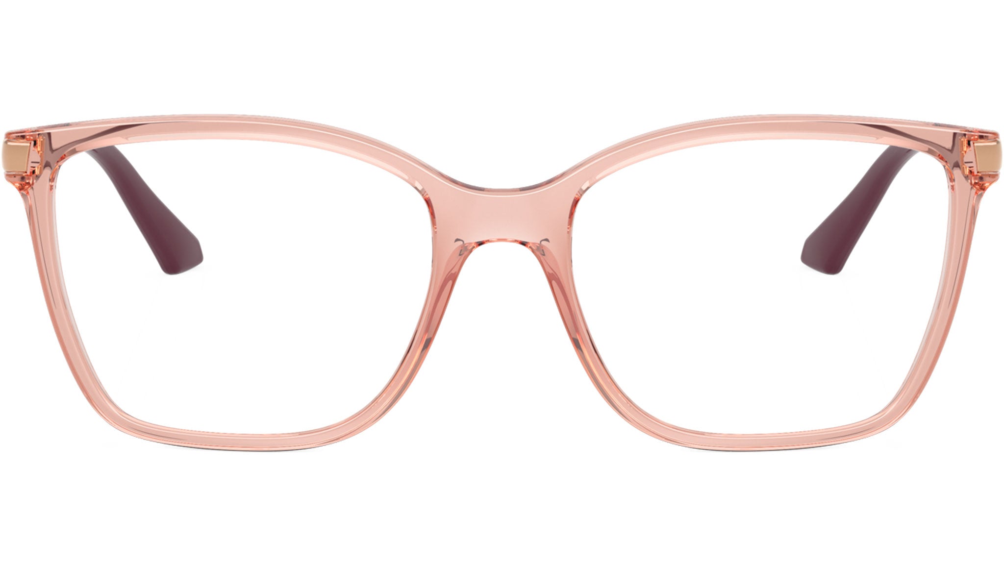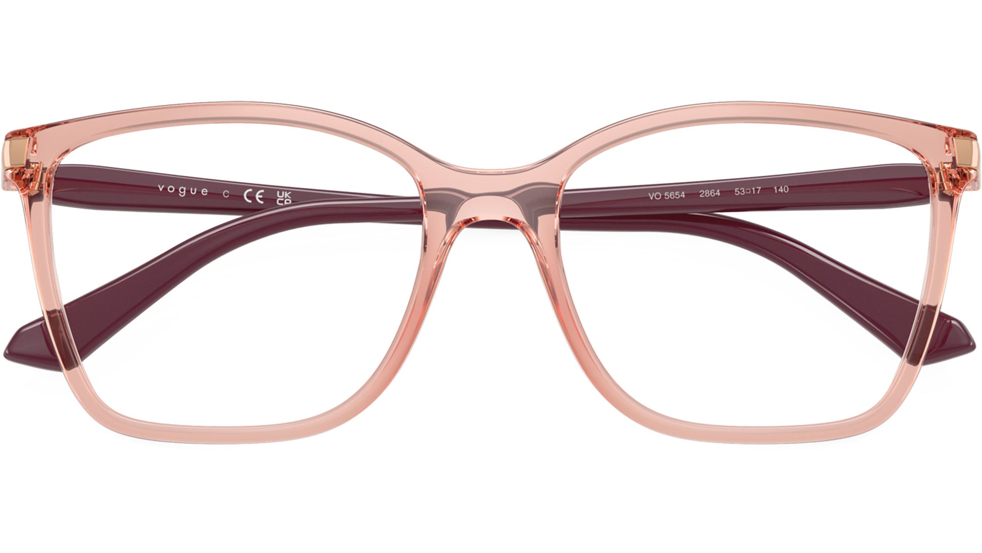 Vogue glasses for women model VO5654 2864 featuring transparent dark pink nylon frame and base 4 demo lens. High bridge fit. Frame line: In Vogue. Brand code: 0VO5654. Color code: 2864. Authorised Vogue Eyewear Online Reseller. Your glasses will come including the original case and accessories and will be covered by 12 month global warranty.