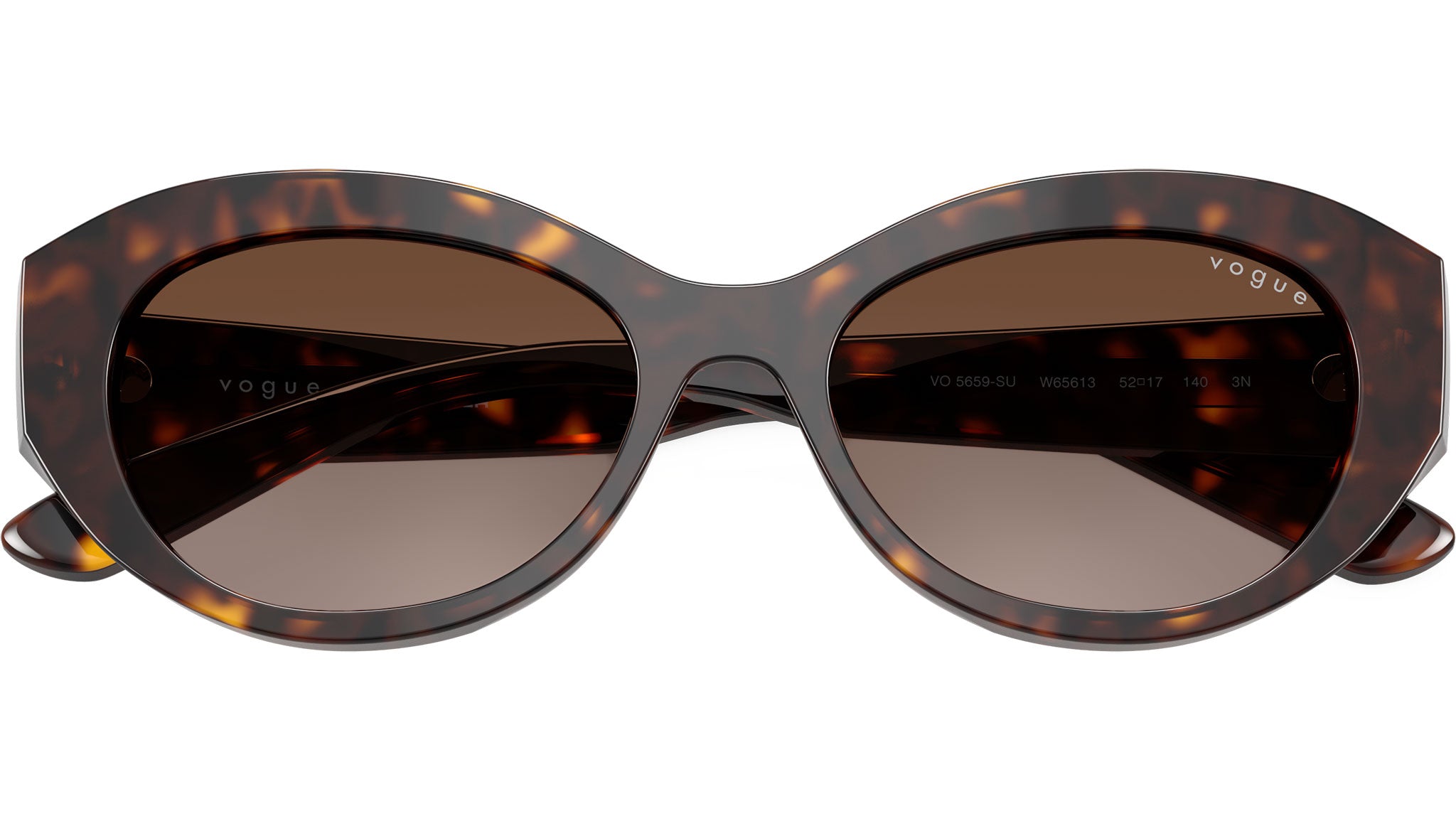Vogue sunglasses for women model VO5659SU W65613 featuring dark havana acetate frame and gradient brown base 2 bio poliammide lenses. Universal fit. Frame line: Forerunner. Brand code: 0VO5659SU. Color code: W65613. Authorised Vogue Eyewear Online Reseller. Your glasses will come including the original case and accessories and will be covered by 12 month global warranty.