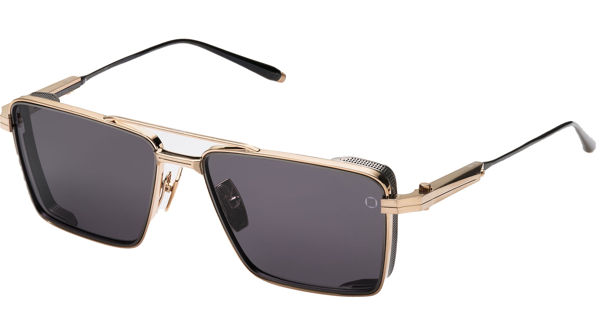 The Sprint-A frame by Akoni eyewear exemplifies the brand's seamless blend of heritage design and advanced innovation. Featuring mini side-shields with fine perforations reminiscent of vintage sports car interiors, this model is engineered with an adjustable temple system to deliver a custom, precision fit. Crafted in matte black titanium with brushed 12k gold accents, the frame is paired with sophisticated double gradient CR-39 lenses that shift from dark grey to rich green, adding depth and elegance. Meticulously made in japan, each piece reflects Akoni’s commitment to excellence and detail, and is presented in custom packaging that includes a hard case, microfiber cloth, and certificate of authenticity.