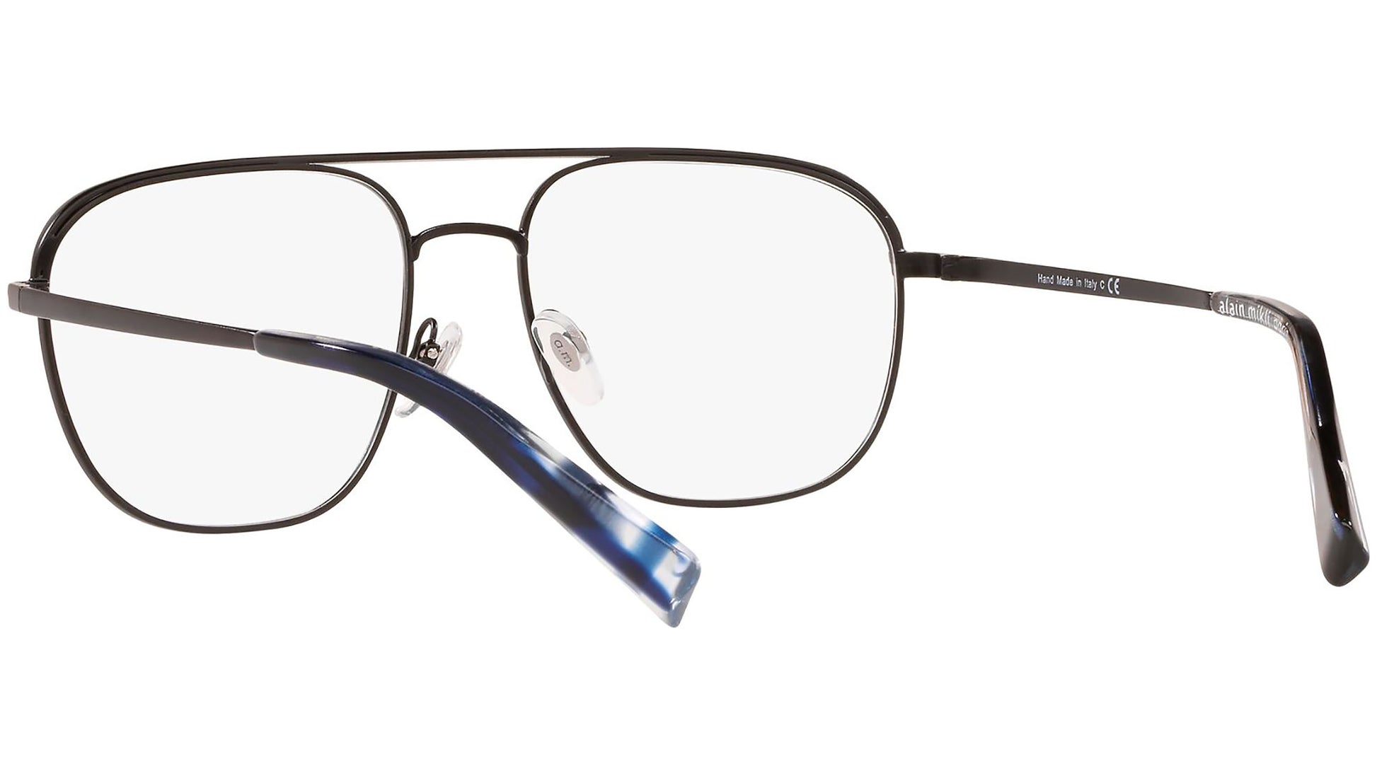 Alain Mikli Eyewear Collection model 0A02042, matt black and blue frame variant, color code 001. Alain Mikli is known for pioneering eyewear as an accessory. The brand fuses art with fashion to create frames that are wearable yet distinctive and provocative – with unique design and exclusive color combinations.