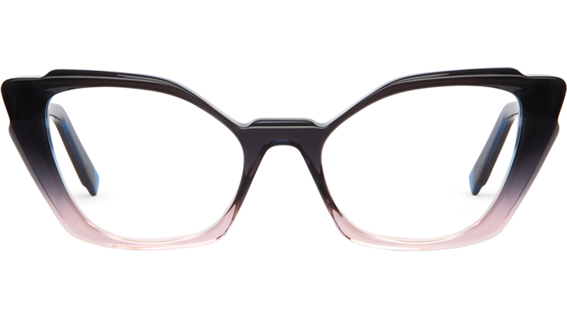Bobsdrunk Elina glasses featuring blue / orange gradient butterfly acetate frame and demo lens. The Elina frame embodies a feminine and elegant design that seamlessly blends research, style, and contemporary trends. This frame stands out with its unique and sophisticated aesthetic, characterized by a classic and timeless spirit that never appears banal. Brand line: Optical Collection. Style code: ELIV3322892353. Color code: 332. Authorized Bobsdrunk online reseller. Your glasses will include the original case and accessories and are covered by a 12-month global warranty.