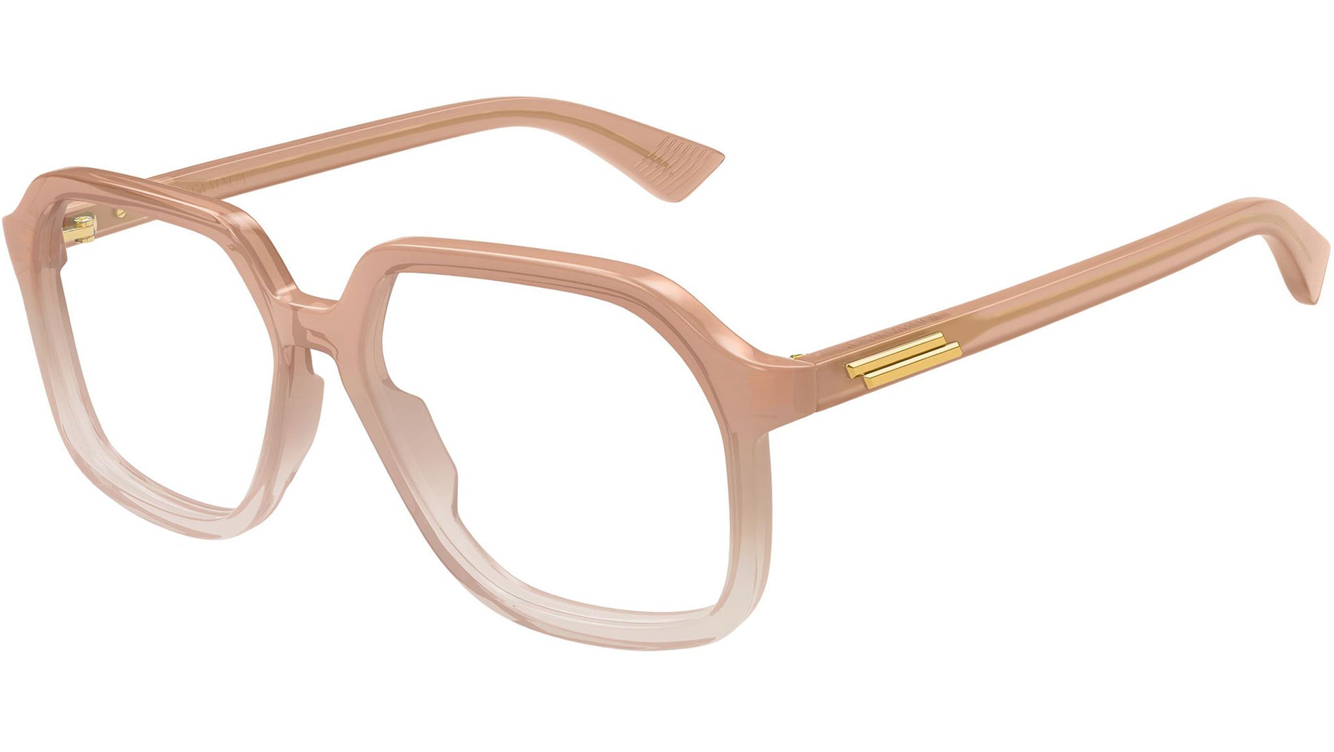 Gafas Bottega Veneta BV1329O 007 para hombre y mujer. Montura rectangular de acetato reciclado en degradado brillante de rosa ópalo a rosa claro transparente y lentes de muestra. Línea de la marca: Ribbon. Código de estilo: BV1329O. Código de color: 007. Hechas en Italia. Distribuidor autorizado en línea de Bottega Veneta. Sus gafas incluyen el estuche y los accesorios originales, y cuentan con una garantía global de 12 meses.