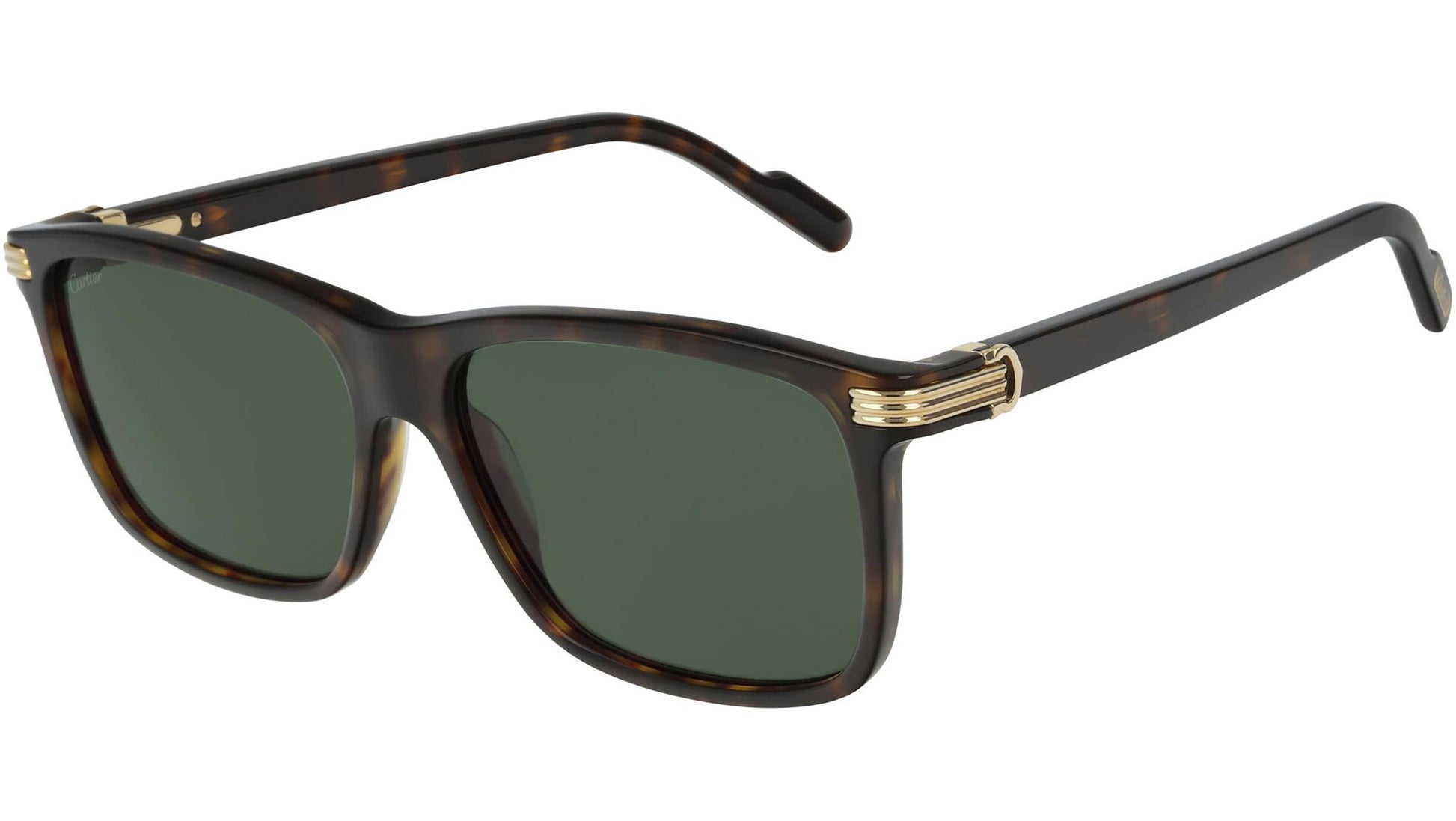 Cartier CT0160S 002 sunglasses with dark tortoiseshell / smooth champagne golden frame and green lens.