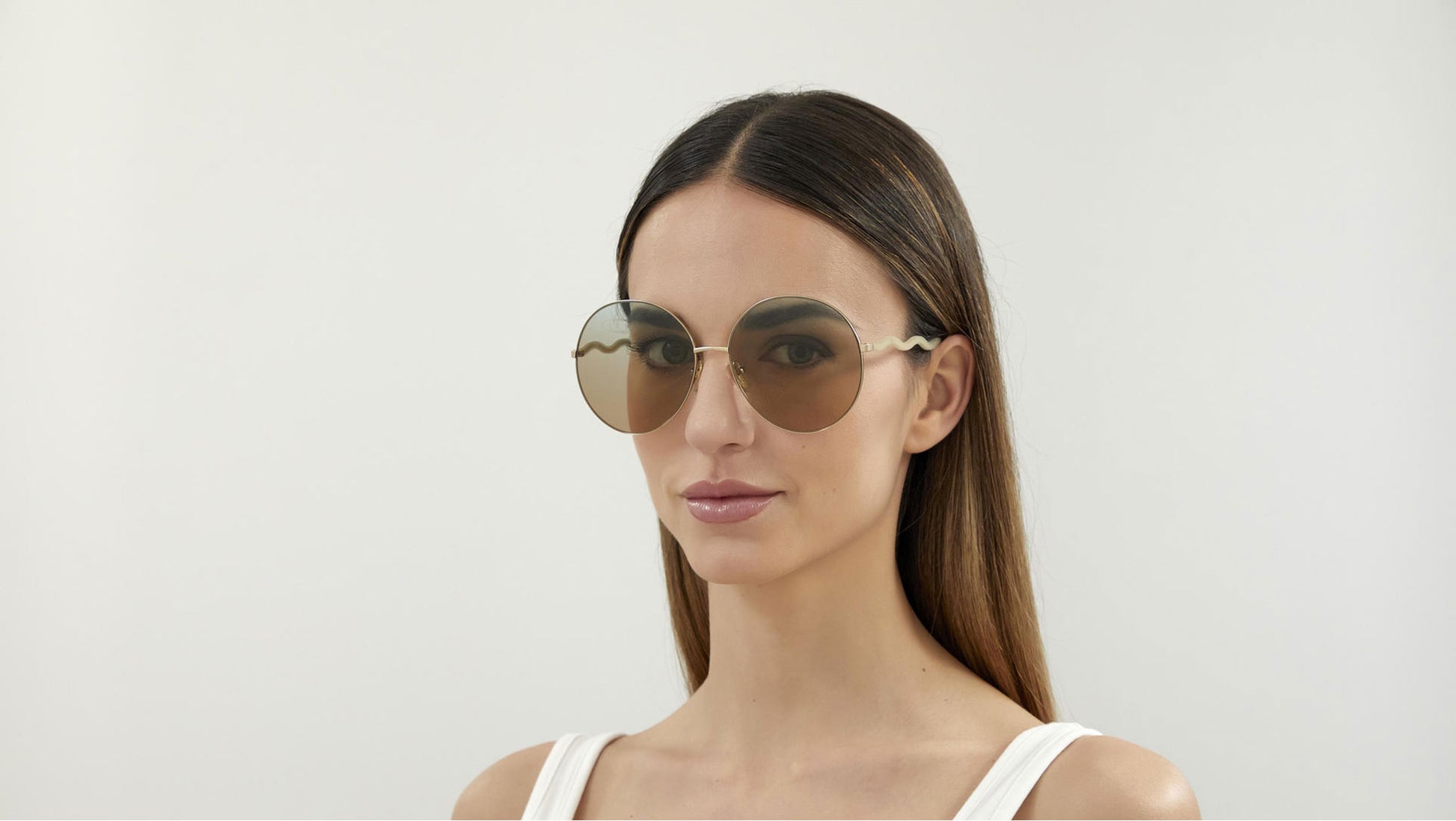 Gafas de sol Chloé CH0055S 004 con montura dorada clásica brillante y lentes de doble degradado de color marrón a verde. En las últimas temporadas, Chloé se ha ganado el favor de la industria de la moda y de los consumidores globales como una marca sofisticada que encarna plenamente los valores de la feminidad moderna, la gracia, la confianza y la sencillez. La Maison parisina es reconocida por su encanto natural que equilibra el savoir-faire de alta costura con una actitud juvenil.
