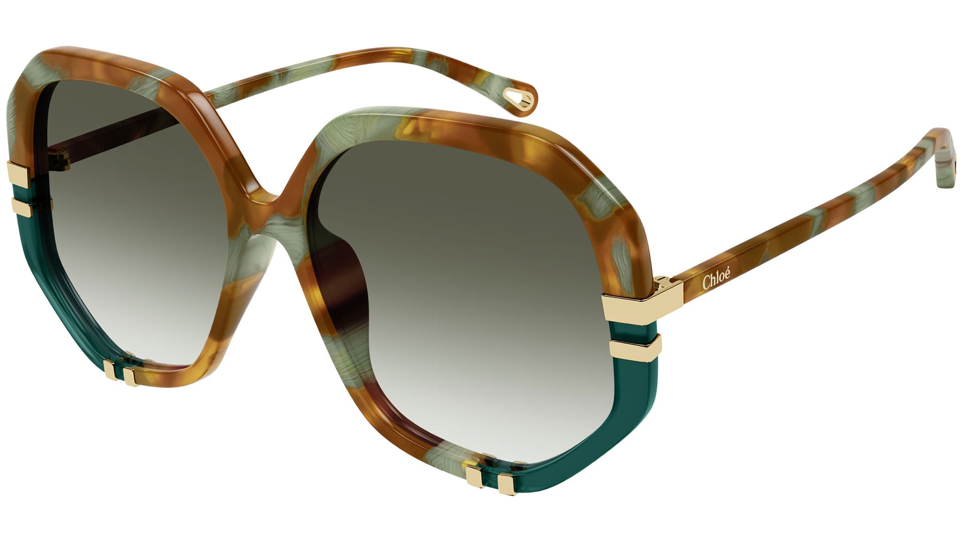 Chloé CH0105S 010 Tortoise Green Geometric Sunglasses