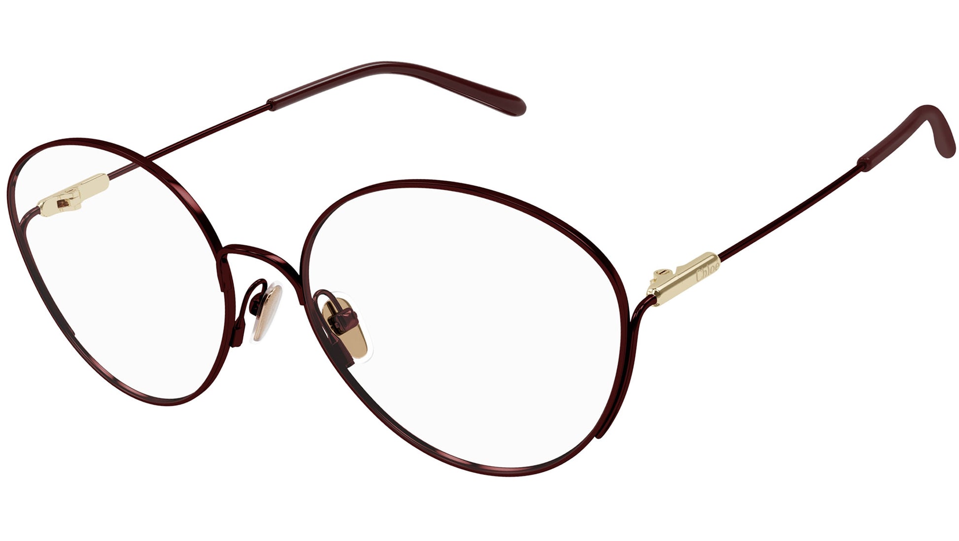 Gafas Chloé CH0168O 003 para mujer, con montura metálica de ojo de gato color vino lacado brillante y cristales de muestra. Línea de marca: Chloé. Código de estilo: CH0168O. Código de color: 003. Fabricadas en Italia. Distribuidor online autorizado de Chloé. Tus gafas incluirán el estuche y los accesorios originales y están cubiertas por una garantía global de 12 meses.