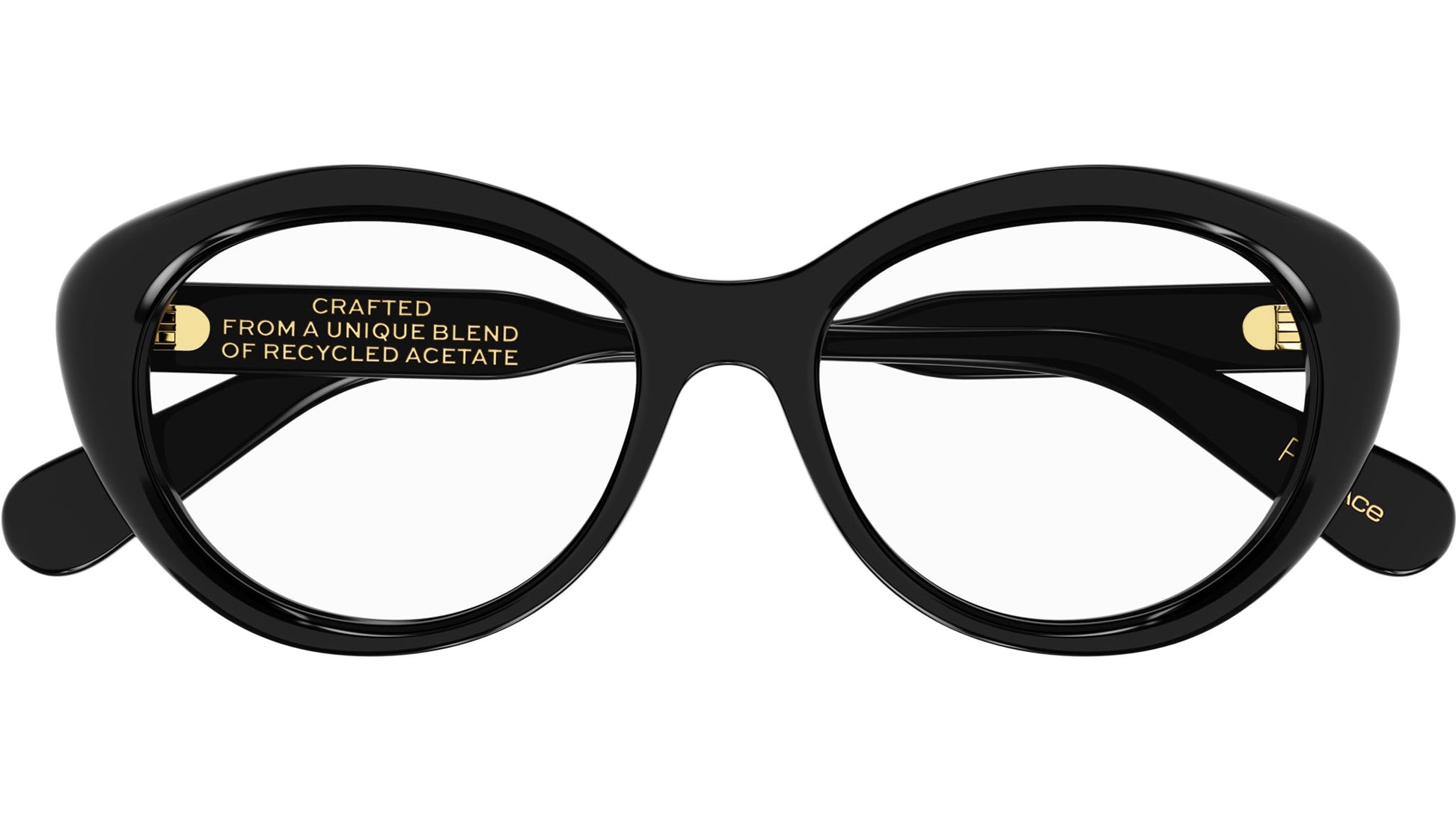 Gafas Chloé CH0223O 001 para mujer, con montura de acetato reciclado de ojo de gato en color negro liso brillante y lentes de muestra. Línea de marca: Chloé. Código de estilo: CH0223O. Código de color: 001. Fabricadas en Italia. Distribuidor online autorizado de Chloé. Tus gafas incluirán el estuche y los accesorios originales y están cubiertas por una garantía global de 12 meses.