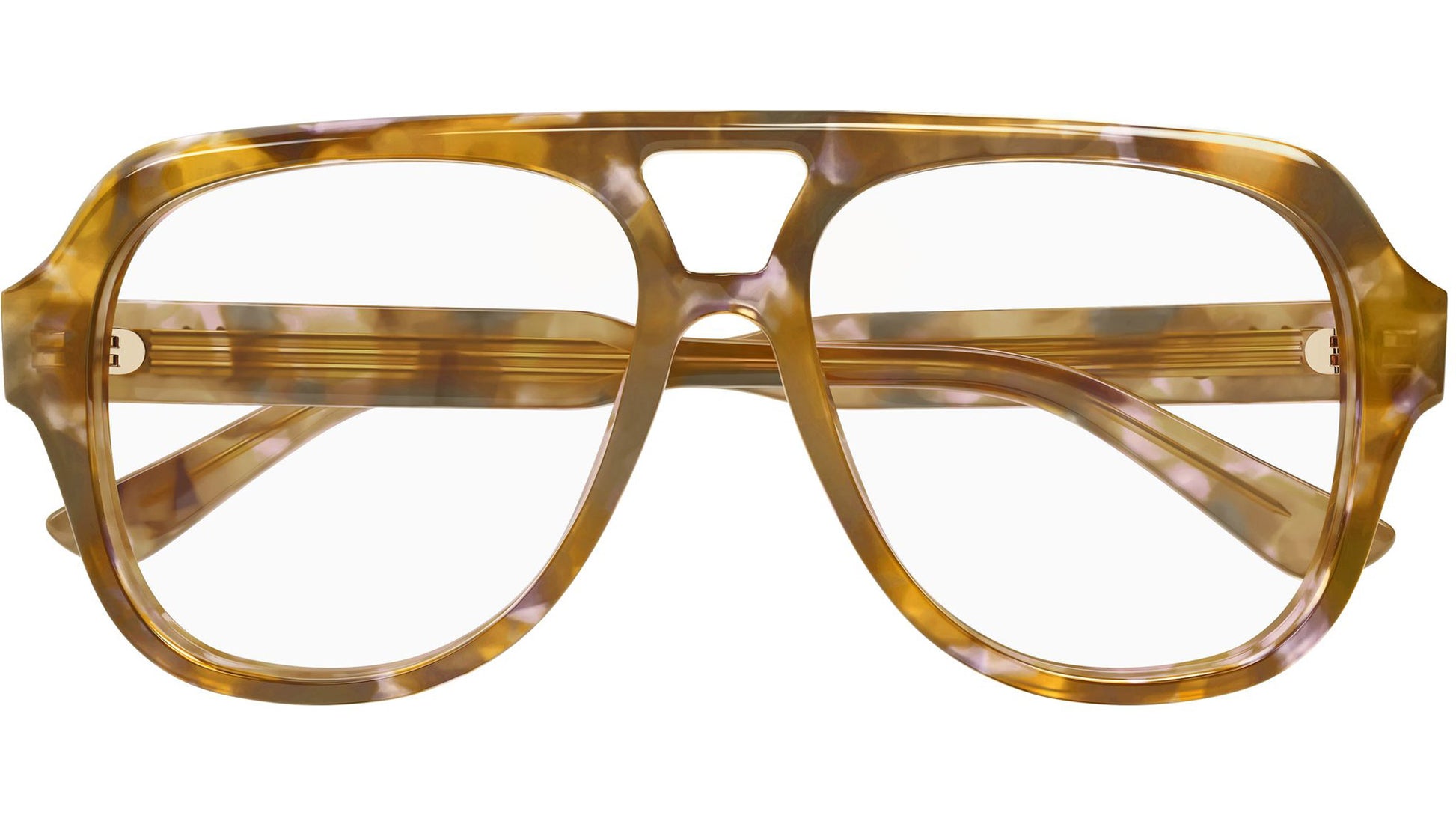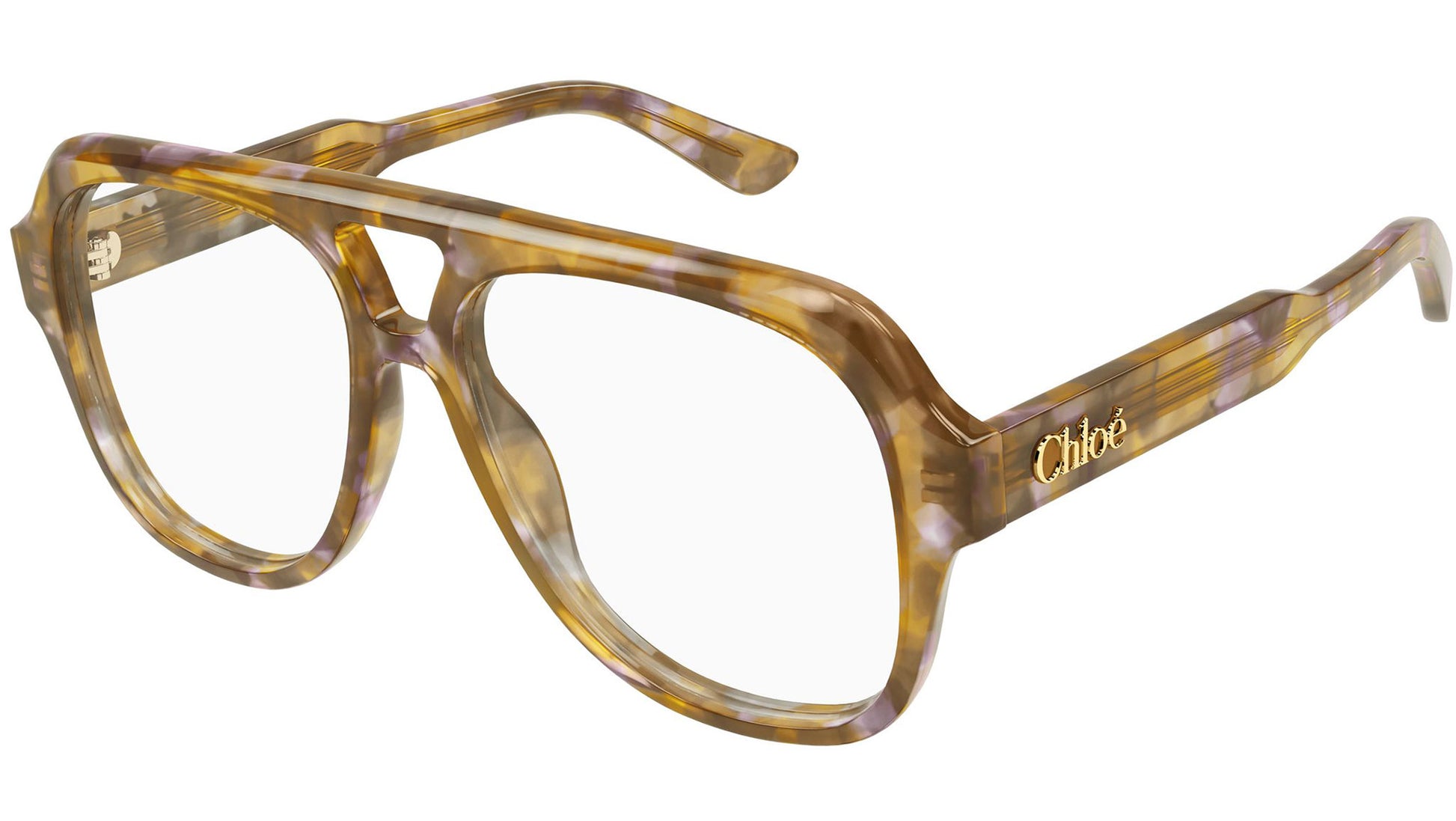 Gafas Chloé CH0339O 004 para mujer, con montura de acetato reciclado color habana brillante transparente naranja/beige tipo aviador y lentes de muestra. Marca: Chloé. Código de estilo: CH0339O. Código de color: 004. Hechas en Italia. Distribuidor autorizado en línea de Chloé. Sus gafas incluyen el estuche y los accesorios originales, y cuentan con una garantía global de 12 meses.