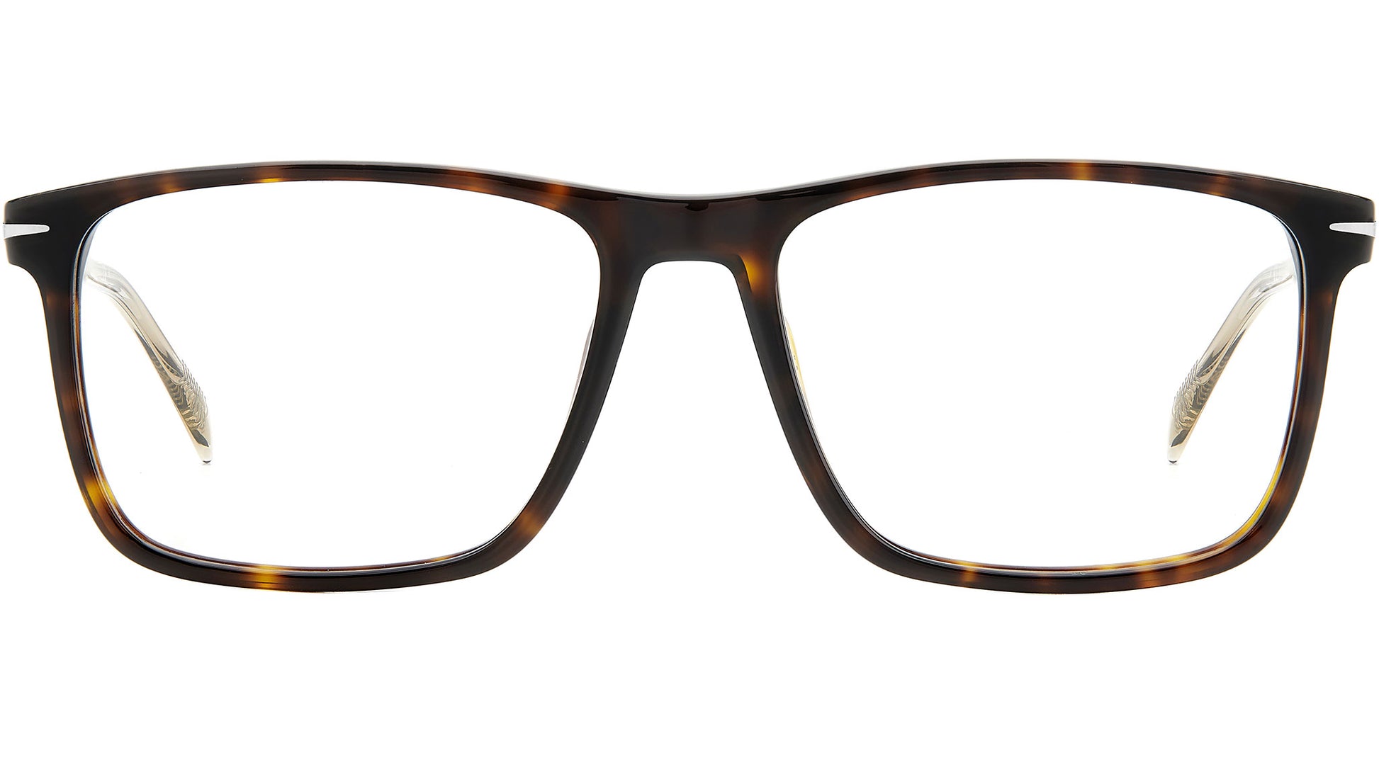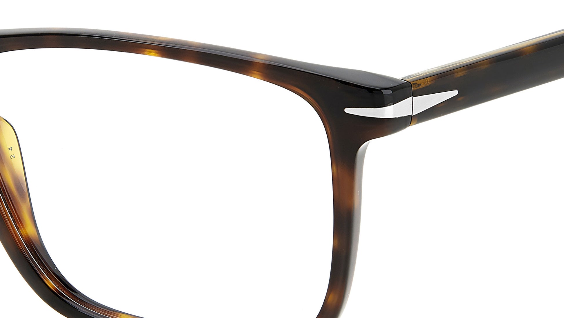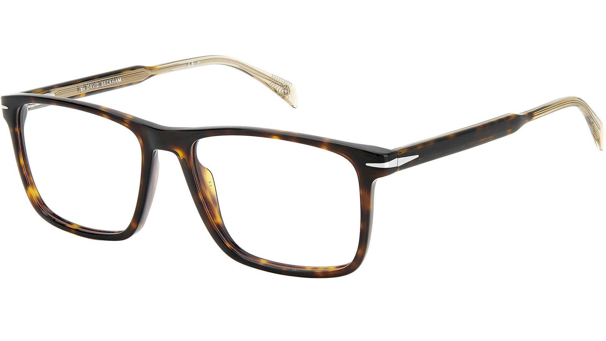 Montura óptica David Beckham modelo DB 1124 código de color 086 habana. Estos espejuelos de David Beckham se distinguen por patillas elegantemente cónicas que fluyen hacia los extremos moldeados, adornados con el monograma DB. Prácticos y cómodos, son un accesorio diseñado para garantizar la comodidad de todos, incluso durante los viajes. La estructura de acetato se equilibra con elementos de metal, como el núcleo de alambre cincelado con el logotipo de David Beckham en el interior y el rombo estilizado de la marca, un emblema perdurable de la libertad.