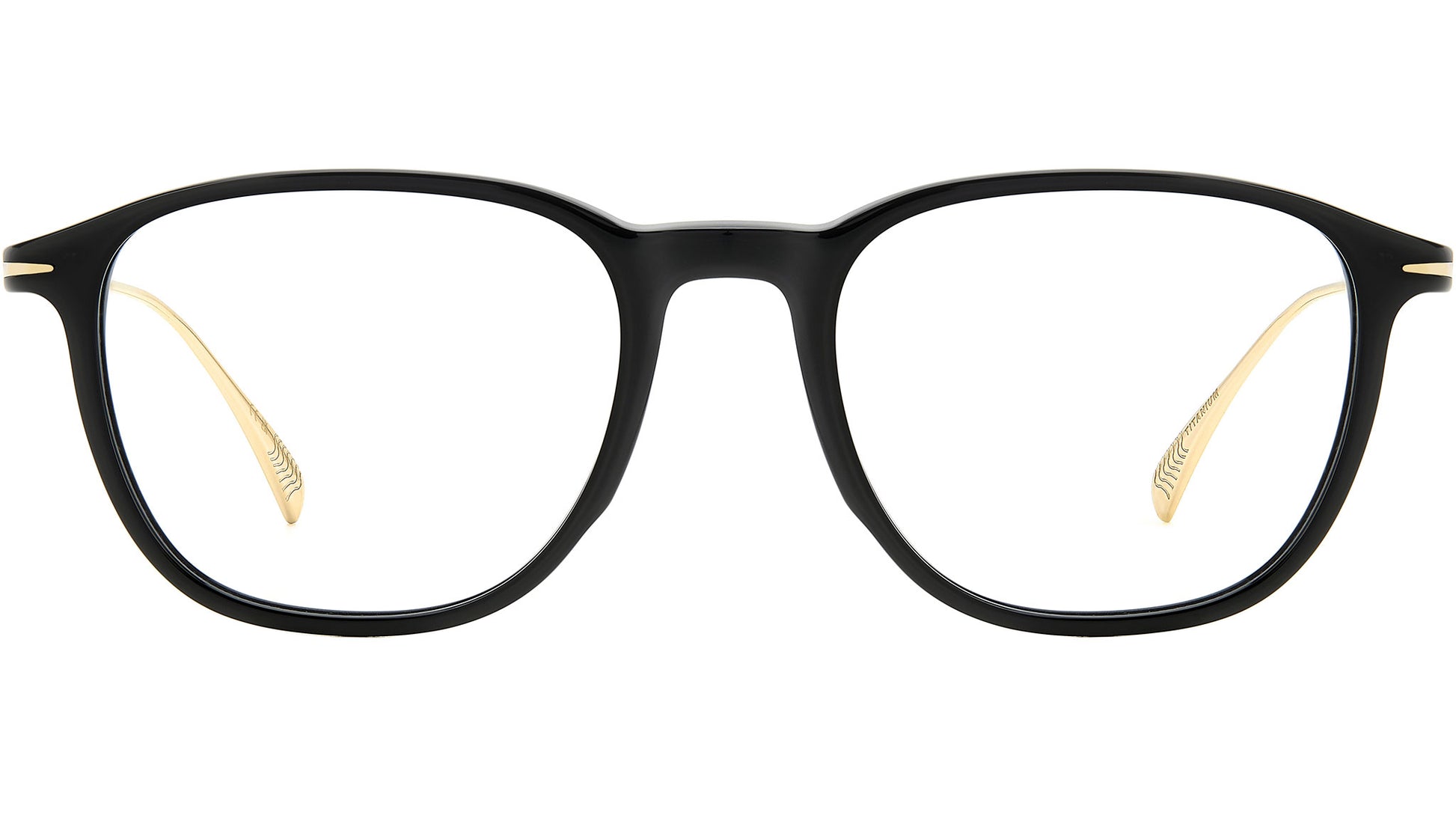 Montura óptica David Beckham modelo DB 1148 código de color 2M2 negro dorado. Materiales de primera calidad y estética vintage definen estos anteojos Eyewear by David Beckham. Combinan patillas de titanio, un material ultraligero, flexible e hipoalergénico, con un fino frontal de acetato. Las características prácticas se enriquecen con líneas y colores clásicos, para unas gafas que completarán cualquier look con indiscutible sofisticación.