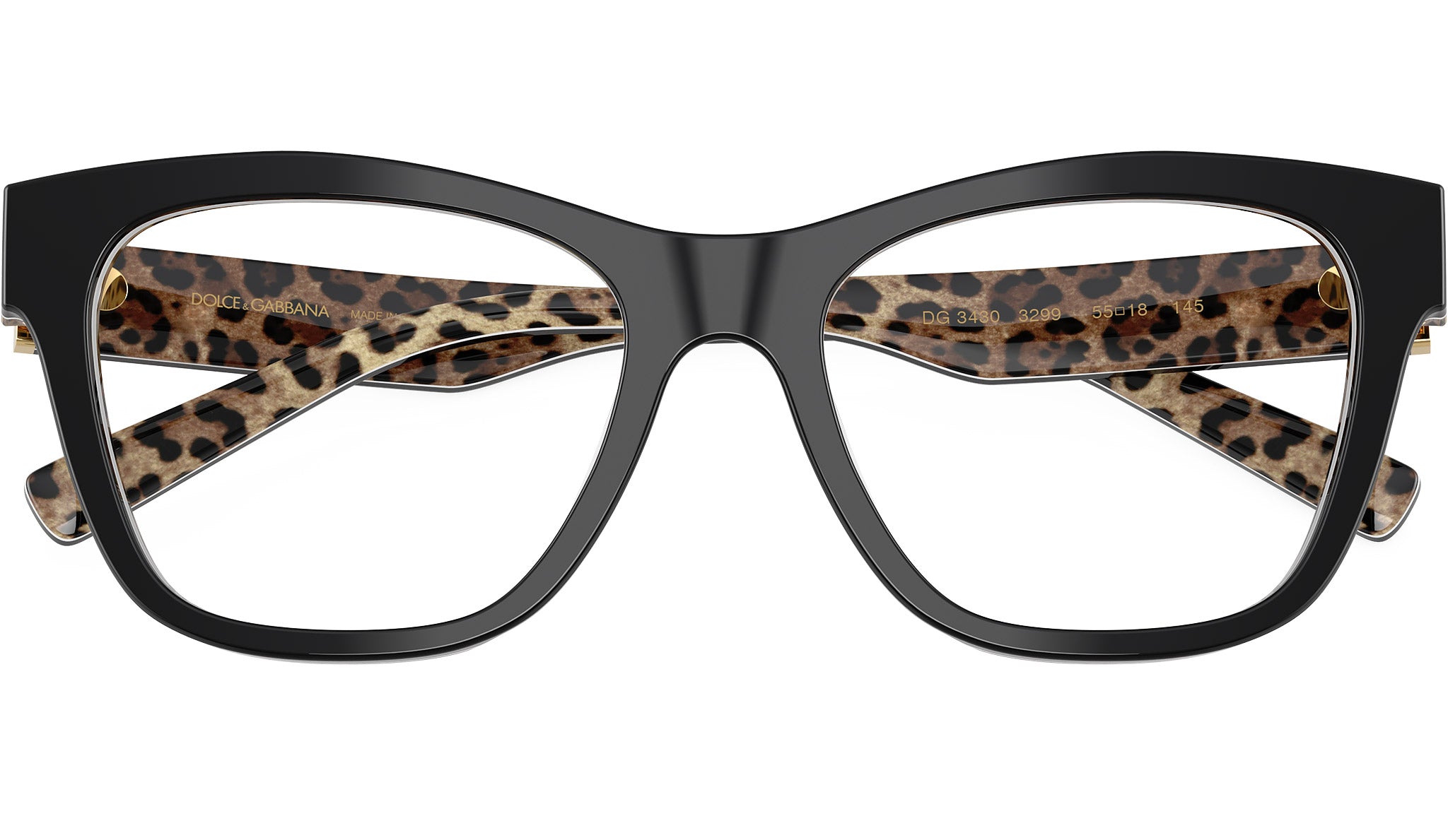 Dolce & Gabbana DG3430 3299 Black On Leo Brown Squared Glasses