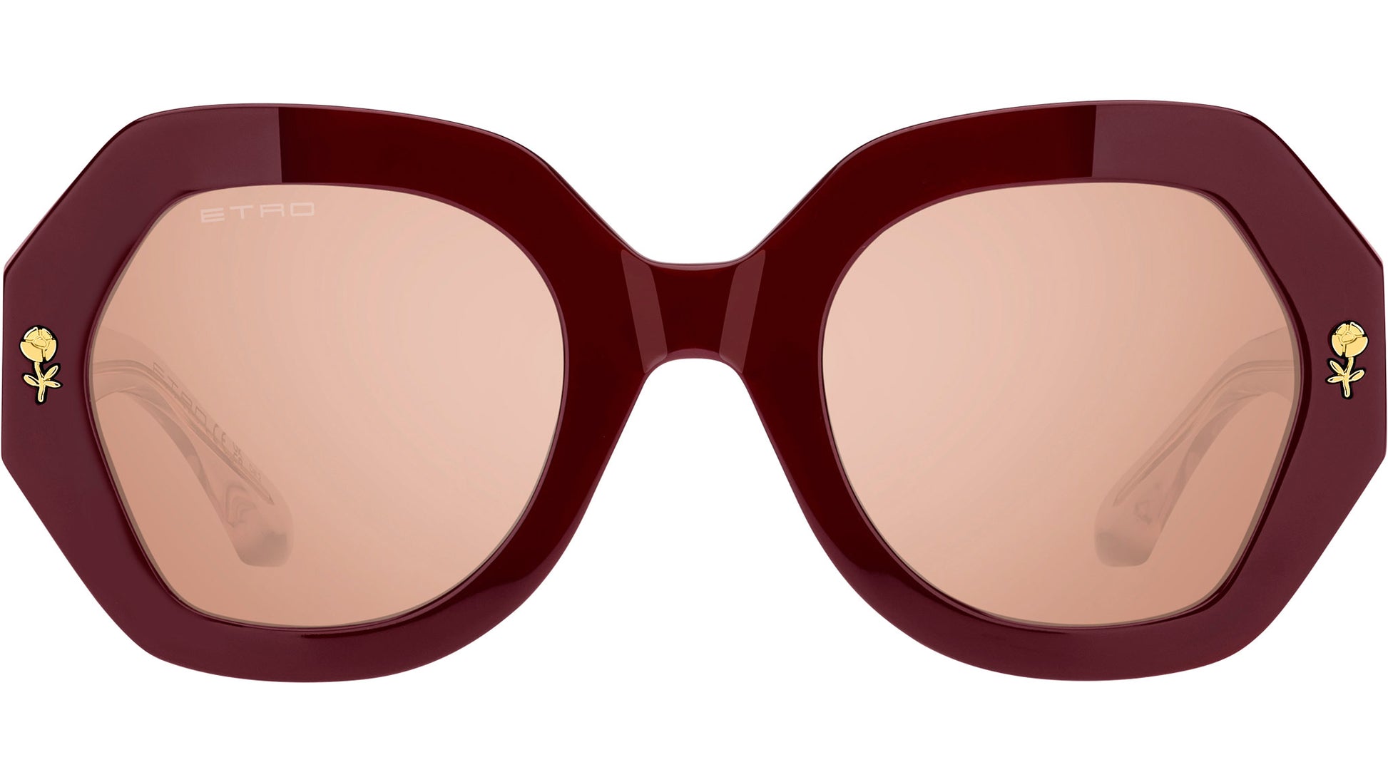 Gafas de sol ETRO modelo 0009/S código de color LHF 2S burdeos. Montura geométrica de acetato de montura completa para mujer con lente flash espejo rosa flash plateado. Un homenaje a las rayas y los motivos florales que se han convertido en sinónimos de la estética ecléctica de ETRO, la colección de gafas "Colour Stripes" traduce los bordados y estampados icónicos de la Maison en gafas de sol innovadoras. La atrevida montura de acetato con perfiles biselados está detallada con un ribete floral de metal precioso y una inserción de rayas multicolores en los laterales, mientras que un núcleo de alambre visible a través de las patillas transparentes añade un toque gráfico. Las letras ETRO grabadas con láser en las lentes y los icónicos extremos de acetato, diseñados para recordar la simetría del logotipo, completan estas monturas únicas. Distribuidor autorizado en línea de gafas ETRO. Tus gafas vendrán con el estuche y los accesorios originales y estarán cubiertas por una garantía global de 12 meses.