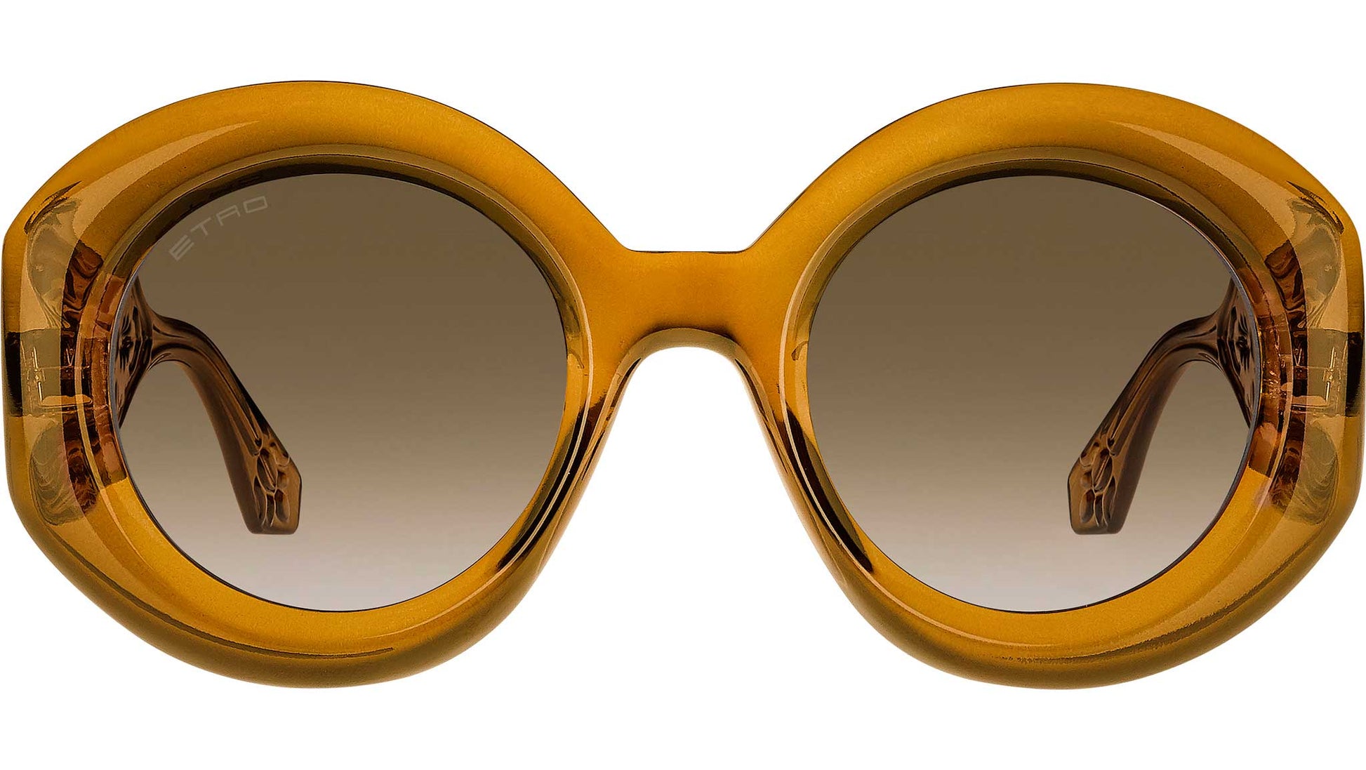Gafas de sol ETRO modelo 0016/G/S código de color ETV HA ámbar dorado. Montura redonda de inyección de montura completa para mujer con lentes de color marrón. La colección de gafas "Paisley" de ETRO adopta uno de los códigos de estilo más distintivos de la Maison: el patrón Paisley del mismo nombre. Reconocida por sus exquisitas telas, la casa ha reinventado este motivo atemporal en una infinidad de formas cautivadoras y expresiones cromáticas; Estas gafas de sol, diseñadas para ser ligeras y cómodas de llevar, revelan el motivo como un sofisticado grabado en la parte interna de las patillas de colores transparentes. Los núcleos de alambre de metales preciosos, las puntas icónicas y la discreta marca ETRO le dan un toque final característico. Distribuidor autorizado en línea de gafas ETRO. Tus gafas vendrán con el estuche y los accesorios originales y estarán cubiertas por una garantía global de 12 meses.