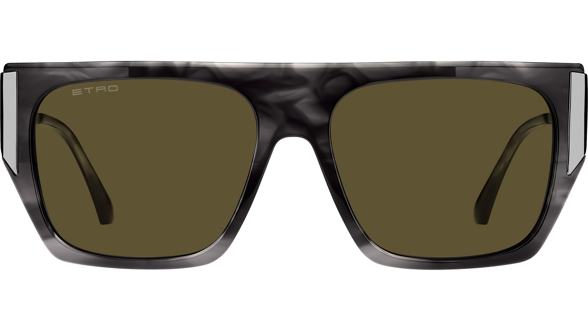 Etro 0051/G/S 2W8 QT sunglasses for men and woman, featuring grey horn rectangular acetate frame and green lenses. Supersized shapes and precise construction take centre stage in ETRO's "New Tailoring" eyewear line. Exuding modern elegance, these sunglasses combine a softly curved acetate frame with a sleek flat top and enveloping metal temples – subtly visible from the front for an eye-catching effect. ETRO's iconic end tips and distinctive logo details round off this disruptive design, available in a range of unexpected colour combinations. Brand line: Tailoring. Style code: 207300. Color code: 2W8 QT. Authorized Etro online reseller. Your glasses will include the original case and accessories and are covered by a 12-month global warranty.