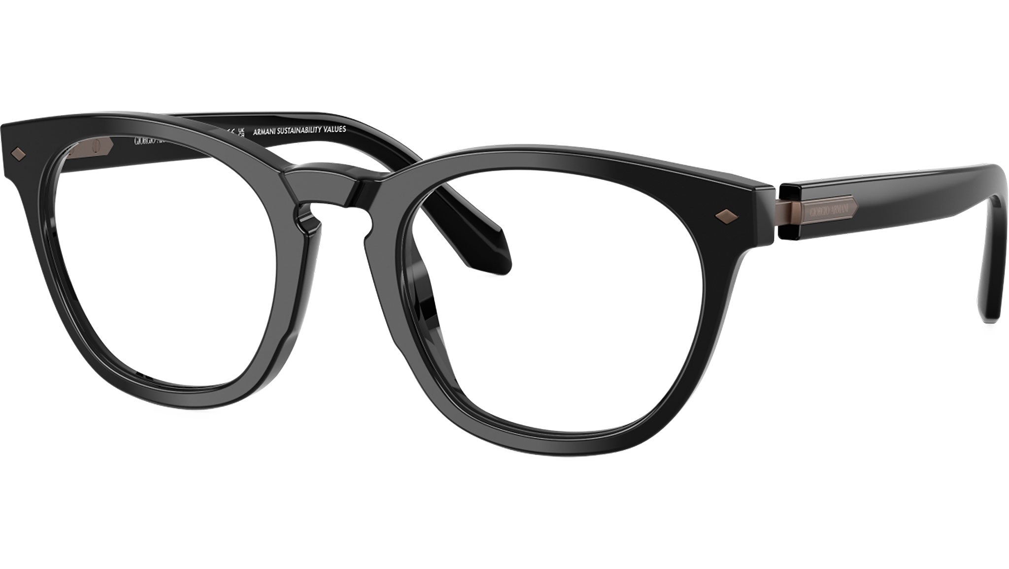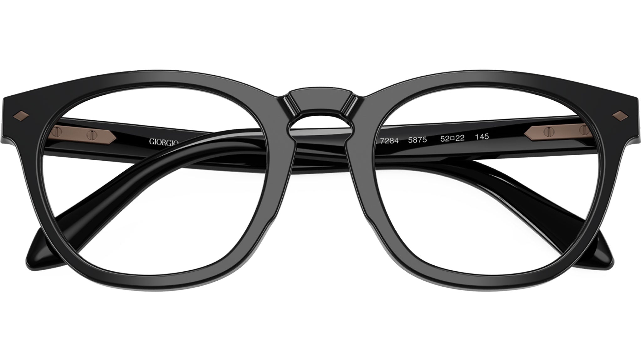 Giorgio Armani AR 7284 5875 glasses, featuring black round acetate frame and demo lenses. High bridge fit. Brand line: Visionary Luxury. Style code: 0AR7284. Color code: 5875. Authorized Giorgio Armani online reseller. Your glasses will include the original case and accessories and are covered by a 12-month global warranty.