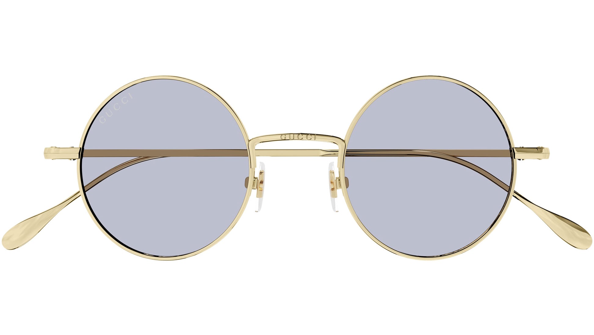 Gafas de sol Gucci Fashion modelo GG1649S marco de metal panthos código de color 006 oro endura brillante con patillas doradas y lentes color lavanda macizo.