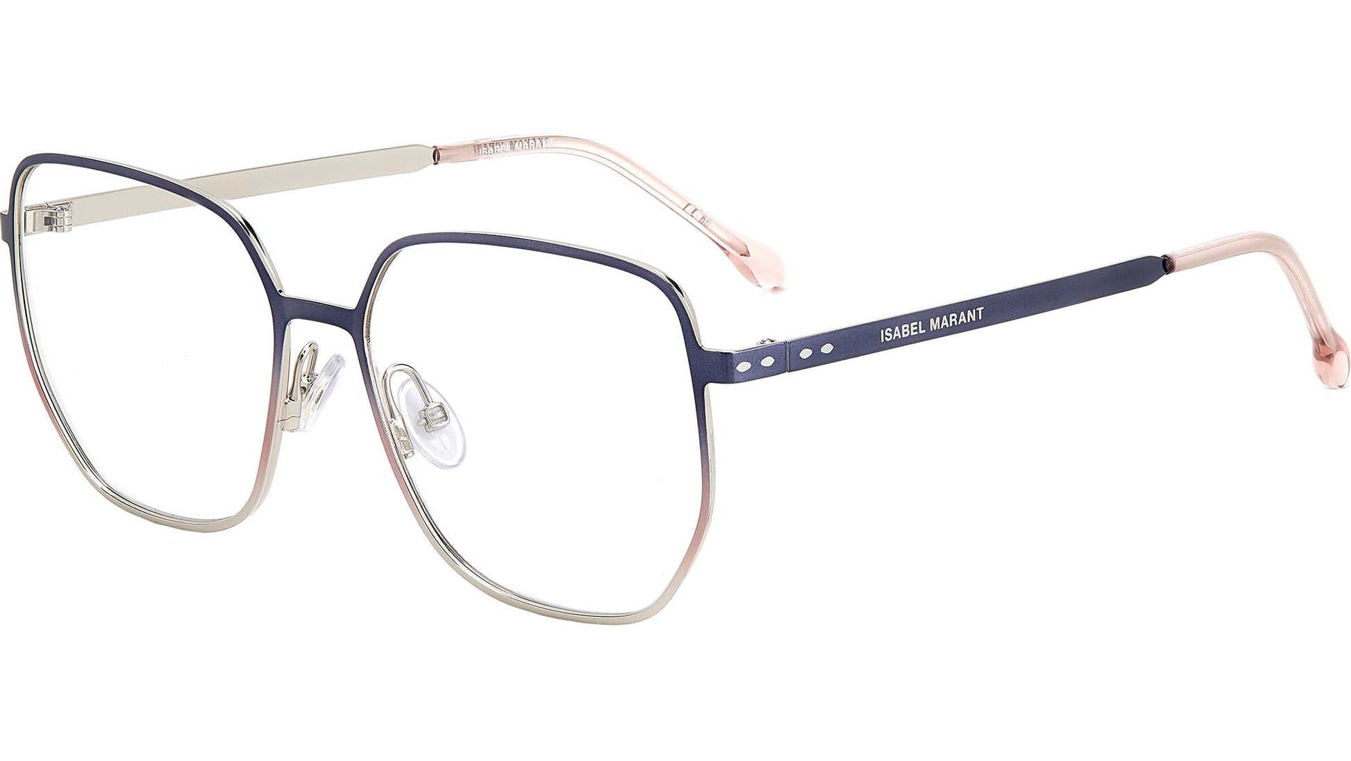 Inspired by the effortless mood of Isabel Marant's clothing and accessories, the Wild Metal eyewear collection is designed for everyday. The distinctive attitude of the frames is defined by a minimalistic, full-metal construction, enriched with shaded touches of colour. These optical glasses are crafted from super light stainless steel, and feature a geometric, squared silhouette. Adjustable nose pads and acetate tips ensure a comfortable fit, while subtle leaf motifs add an iconic finishing touch to the temples and rivets.