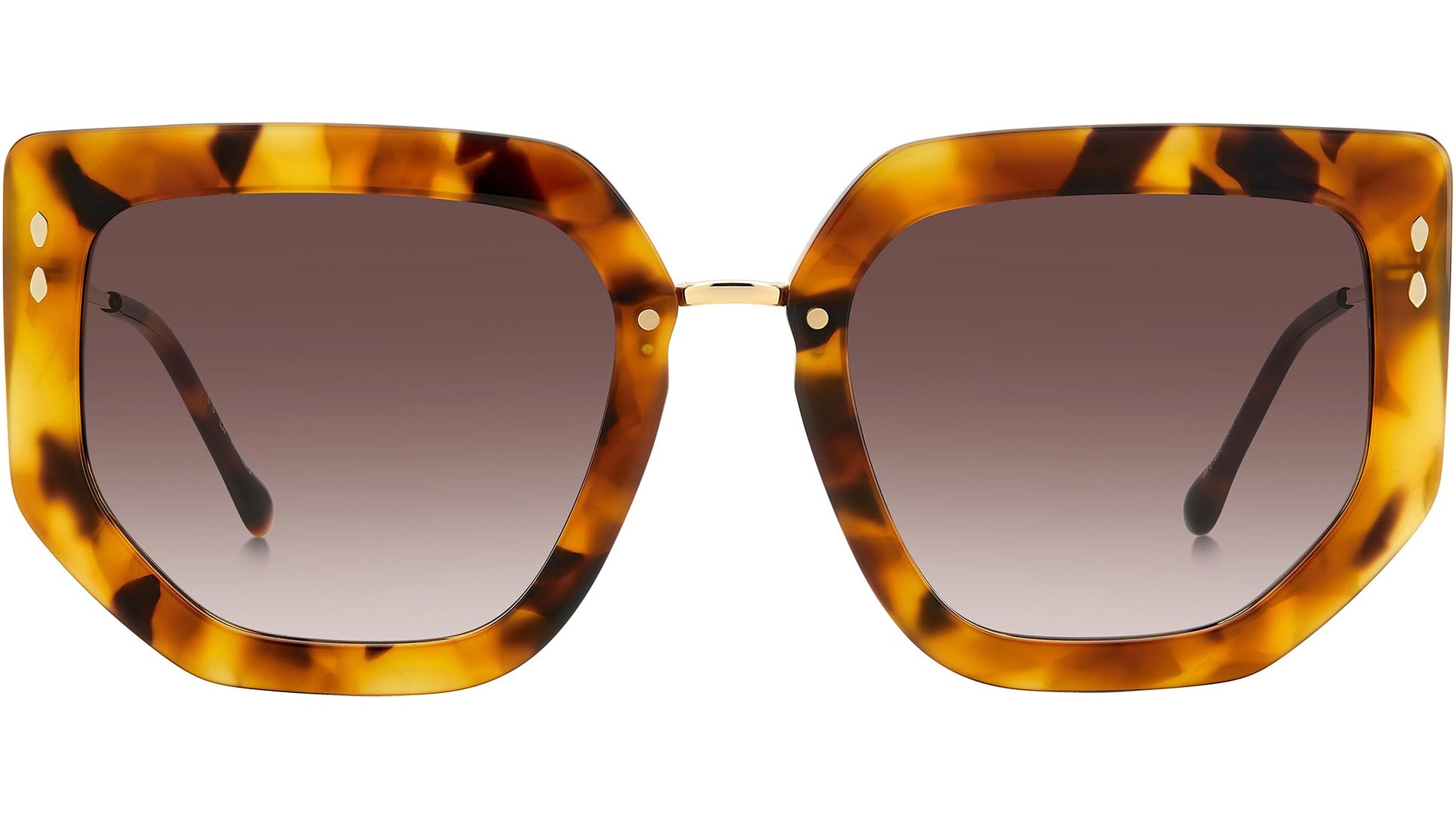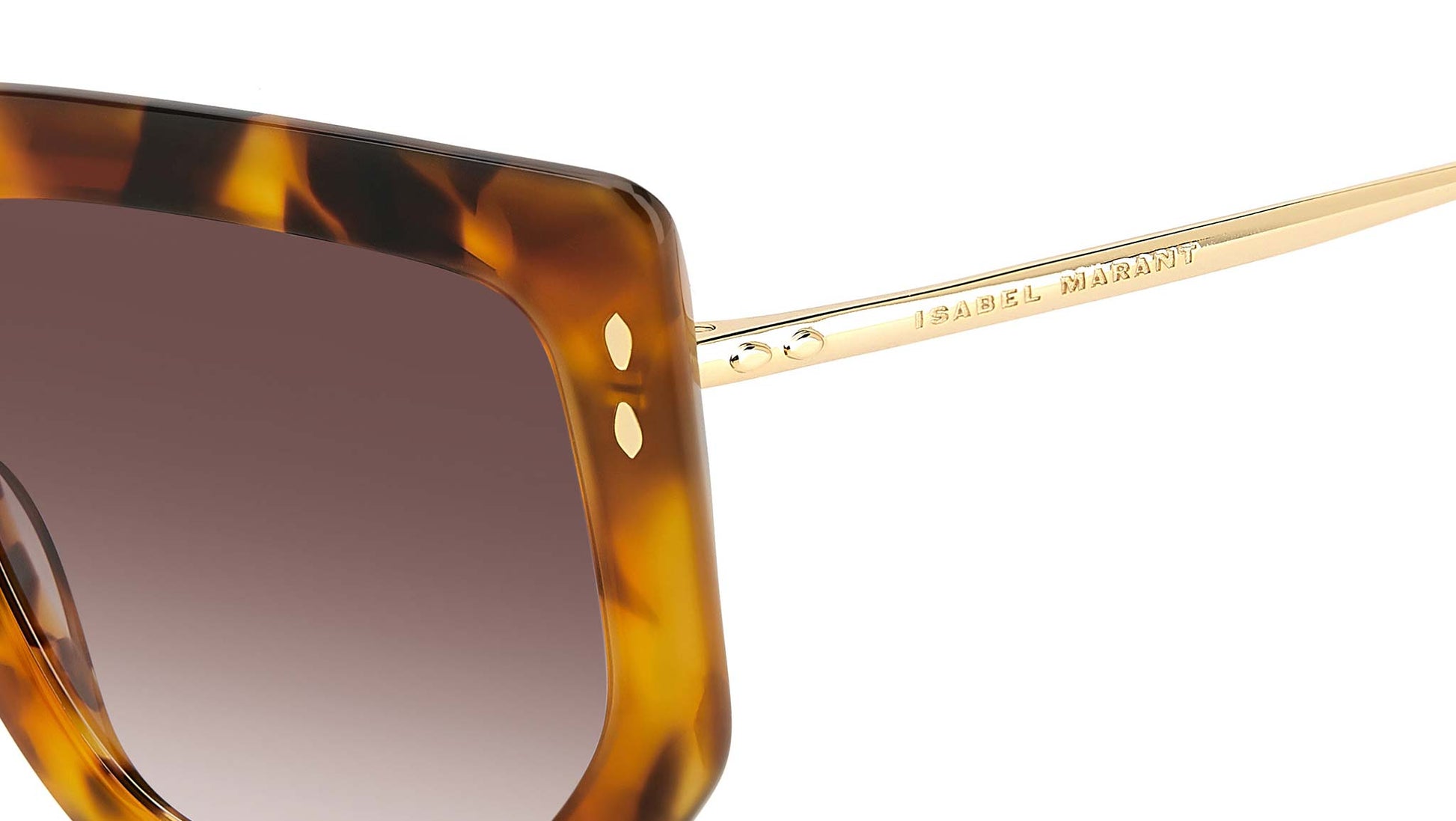 Gafas de sol Isabel Marant IM 0149/S 2IK HA mariposa de acetato dorado habana. Aprovechando la ola retro-chic, la colección de gafas Luck de Isabel Marant rezuma el encanto de los años 70 con líneas llamativas y un encanto glamuroso. Estas gafas de sol lucen un frente geométrico ultrafemenino, confeccionadas en acetato en combinaciones de colores modernas pero versátiles. Con un elegante puente nasal y patillas de metal, están realzados con adornos en forma de hoja y puntas contorneadas para celebrar el motivo característico de la marca. Acabado con letras del logotipo grabadas con láser en la patilla izquierda para darle un toque exclusivo.