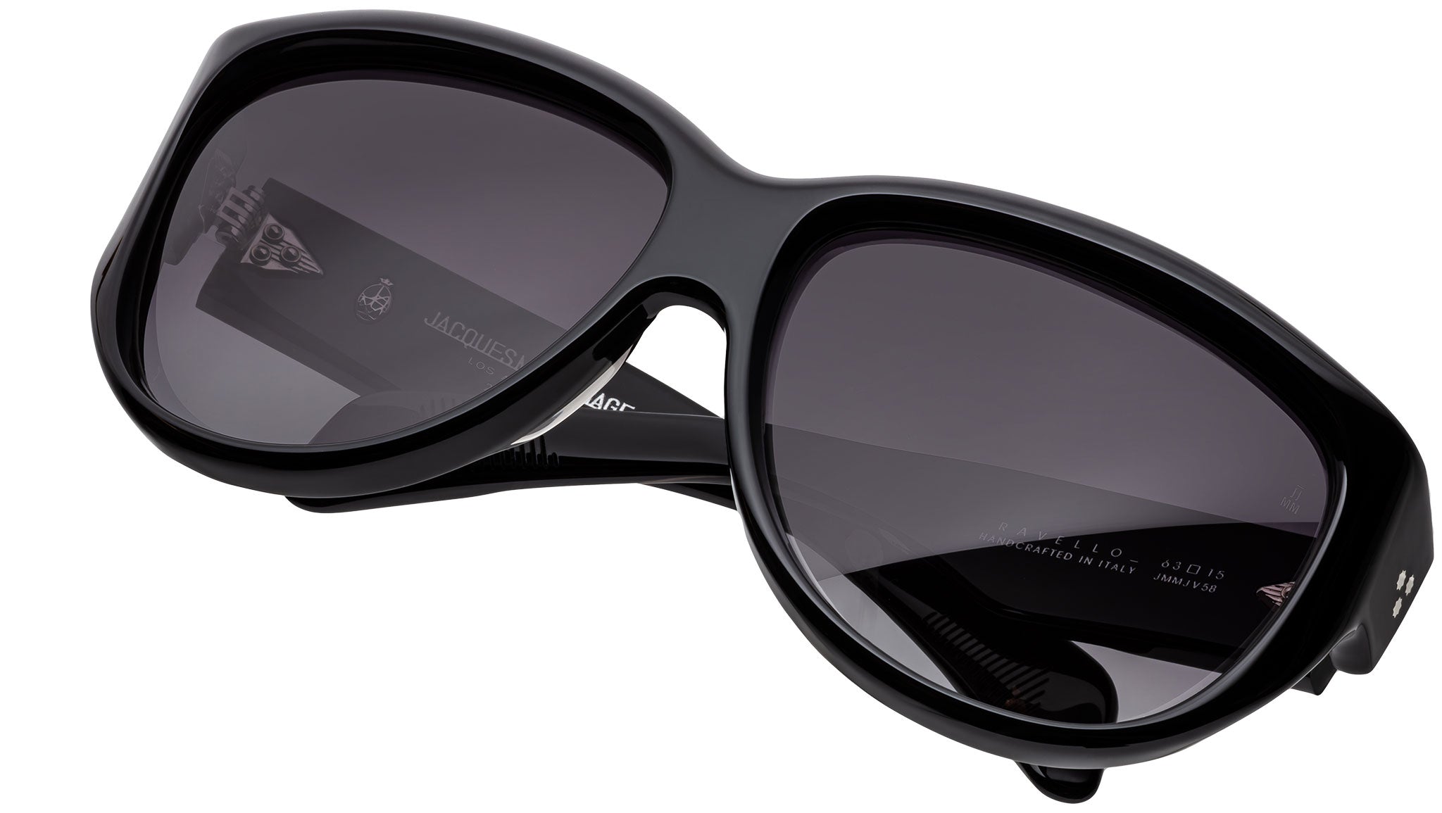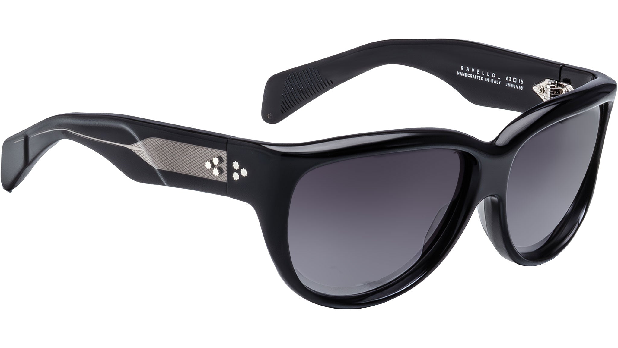 Espere lo mejor de las gafas de sol Ravello de Jacques Marie Mage, unas gafas envolventes radiantes inspiradas en los años 60 hechas a mano en Italia con volúmenes audaces y un ajuste amplio. Este modelo de edición limitada evoca el espíritu de un verano legendario en la Costa Amalfitana, con una silueta redondeada y extragrande adornada con remaches característicos en forma de espuela, bisagras personalizadas de 7 barriles y expresivos núcleos de alambre "Dao" que resaltan la dedicación de la marca al detalle y la lujosa artesanía. LOTE DE PRODUCCIÓN LIMITADA DE 250 PIEZAS. Montura de acetato de celulosa curada negra de 10 mm con patillas personalizadas de acetato de doble laminado con herrajes de metal precioso, núcleos de alambre "DAO" expuestos con acabado plateado, bisagras personalizadas de acero inoxidable de 7 barriles con acabado plateado y detalles Art Déco, lentes Armorlite de base 6 con degradado azabache y tratamiento antirreflejos posterior. Estuche rígido de cuero hecho a mano en Italia. Paño de limpieza/pañuelo de bolsillo de microfibra. Embalaje rígido forrado en tela de seda. Certificado de prensa con membrete con número de serie de edición limitada y firma del artesano. Hecho en Japón. Código del modelo: JMMJV-58.