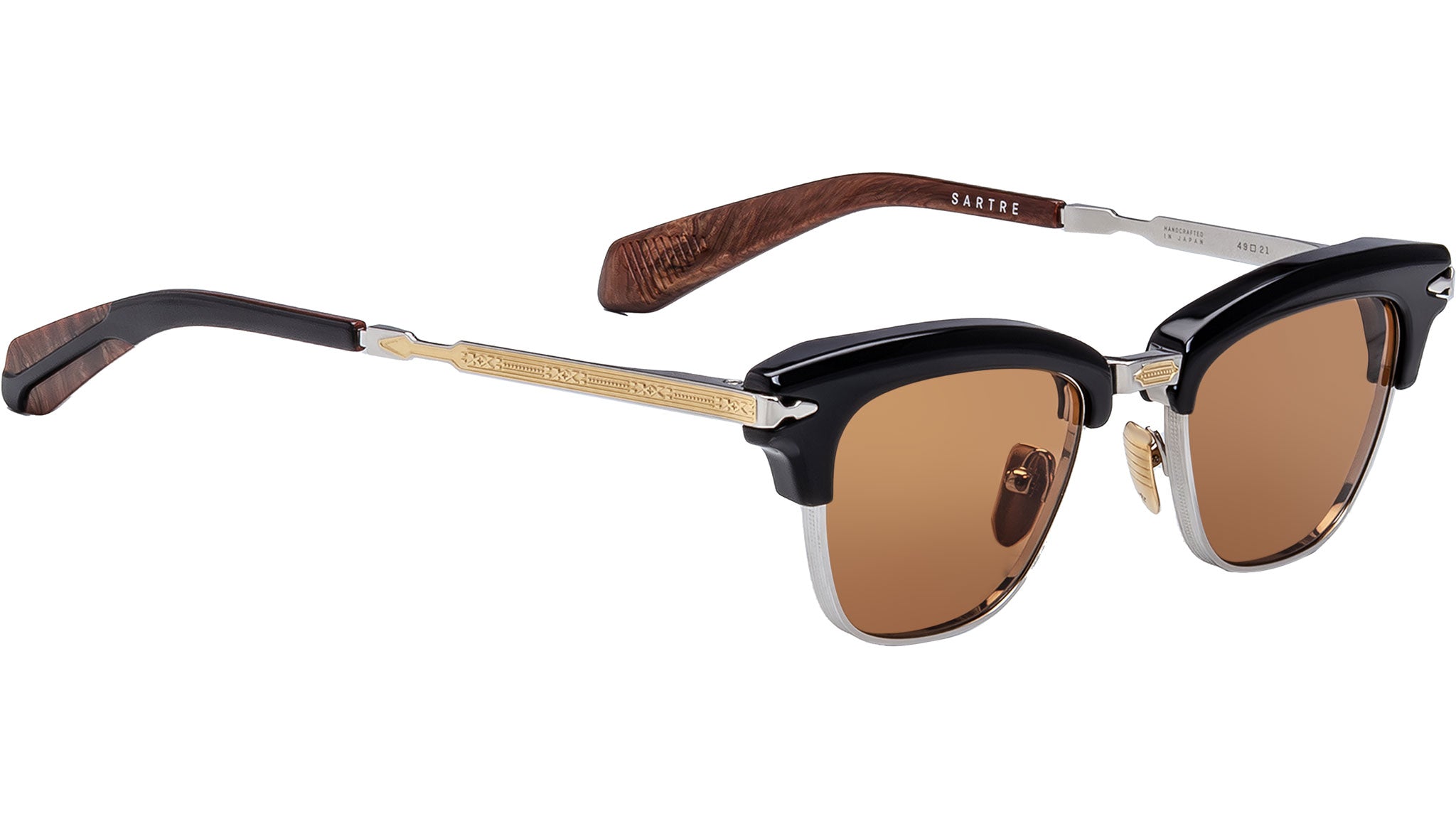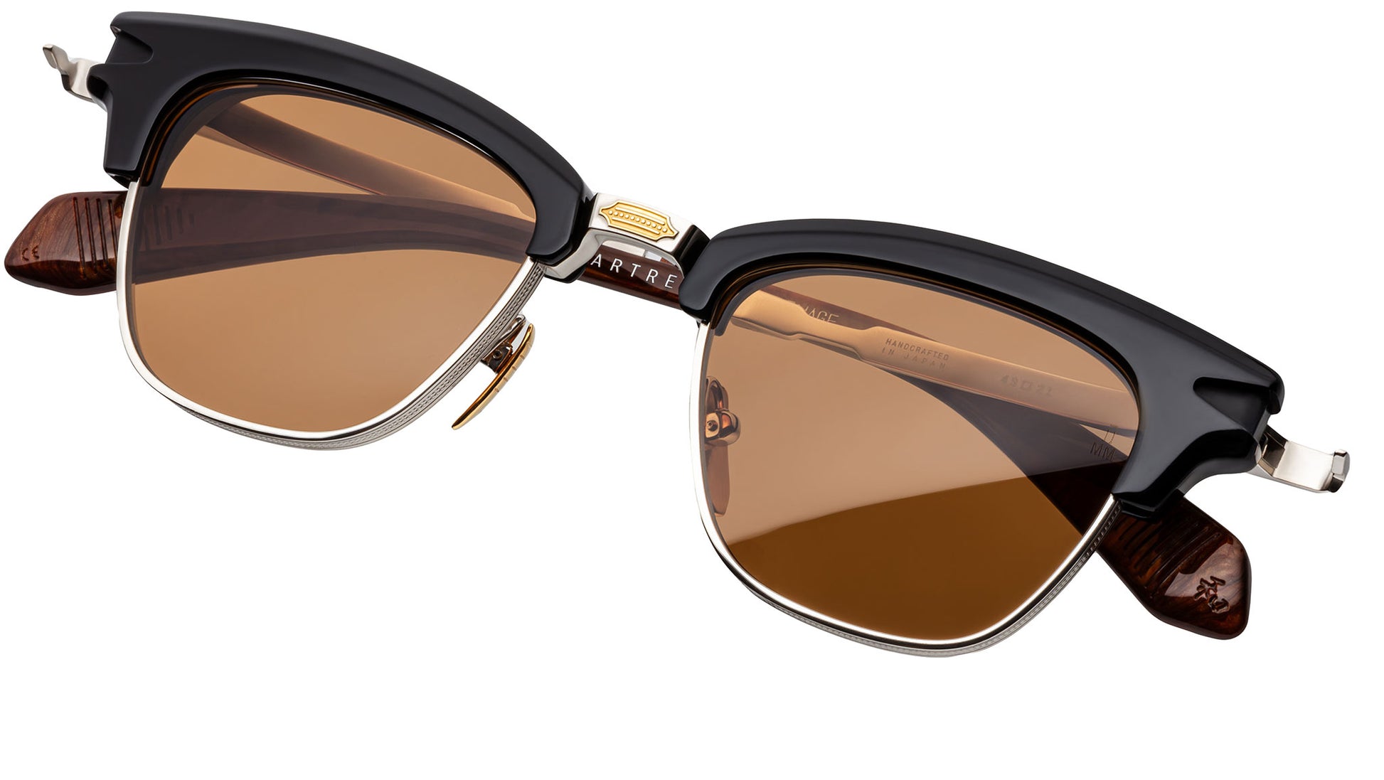 Enfréntete incluso a las filosofías existencialistas más obstinadas con esta expresión reinventada de las gafas de sol Sartre de Jacques Marie Mage, una interpretación audaz de las clásicas gafas combinadas inspiradas en la década de 1950 lanzadas originalmente en 2019. Con una escultural ceja de acetato de 10 mm, bordes redondos de titanio para los ojos con refinados detalles de línea capilar Art Deco y un puente nasal rediseñado con adornos de dos tonos, este diseño equilibra el rigor arquitectónico con matices expresivos. Las distintivas bisagras monobloque con punta de flecha y las patillas de titanio grabadas con un motivo único de punta de flecha se combinan con esculturales terminales de acetato, completando una silueta que transmite seriedad intelectual con refinada elegancia. LOTE DE PRODUCCIÓN LIMITADA DE 500 PIEZAS Montura de titanio 100% beta con acabado plateado y detalles en dorado lunar, terminales de varilla y frente de acetato de celulosa curado negro, aros para los ojos con acabado de titanio plateado con detalles de línea fina Art Deco, frente de acetato de celulosa negro pulido, puente nasal pulido de titanio plateado con adorno con acabado de oro lunar, patillas con acabado de titanio plateado con motivo de punta de flecha grabado y detalles en dorado lunar, bisagras monobloque personalizadas con punta de flecha de titanio con acabado plateado, terminales de varilla de acetato de celulosa negro pulido y madera de raíz, almohadillas nasales personalizadas con acabado en oro brillante con logotipo y detalles de línea fina, lente Armorlite naranja de base 4 con tratamiento antirreflejo posterior. Estuche de cuero rígido hecho a mano en Italia Paño de limpieza/pañuelo de bolsillo de microfibra Embalaje rígido forrado en tela de seda Certificado de prensa con membrete con número de serie de edición limitada y artesano Firma. Fabricado en Japón. Código del modelo: JMMSA-10A
