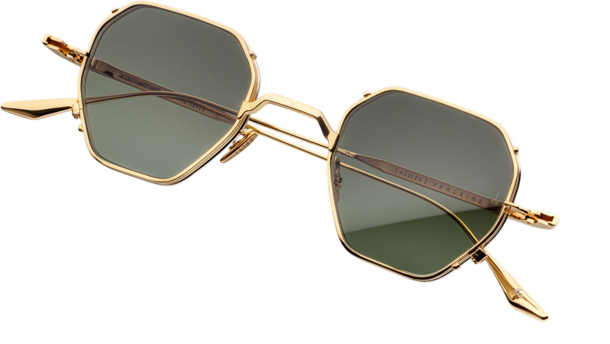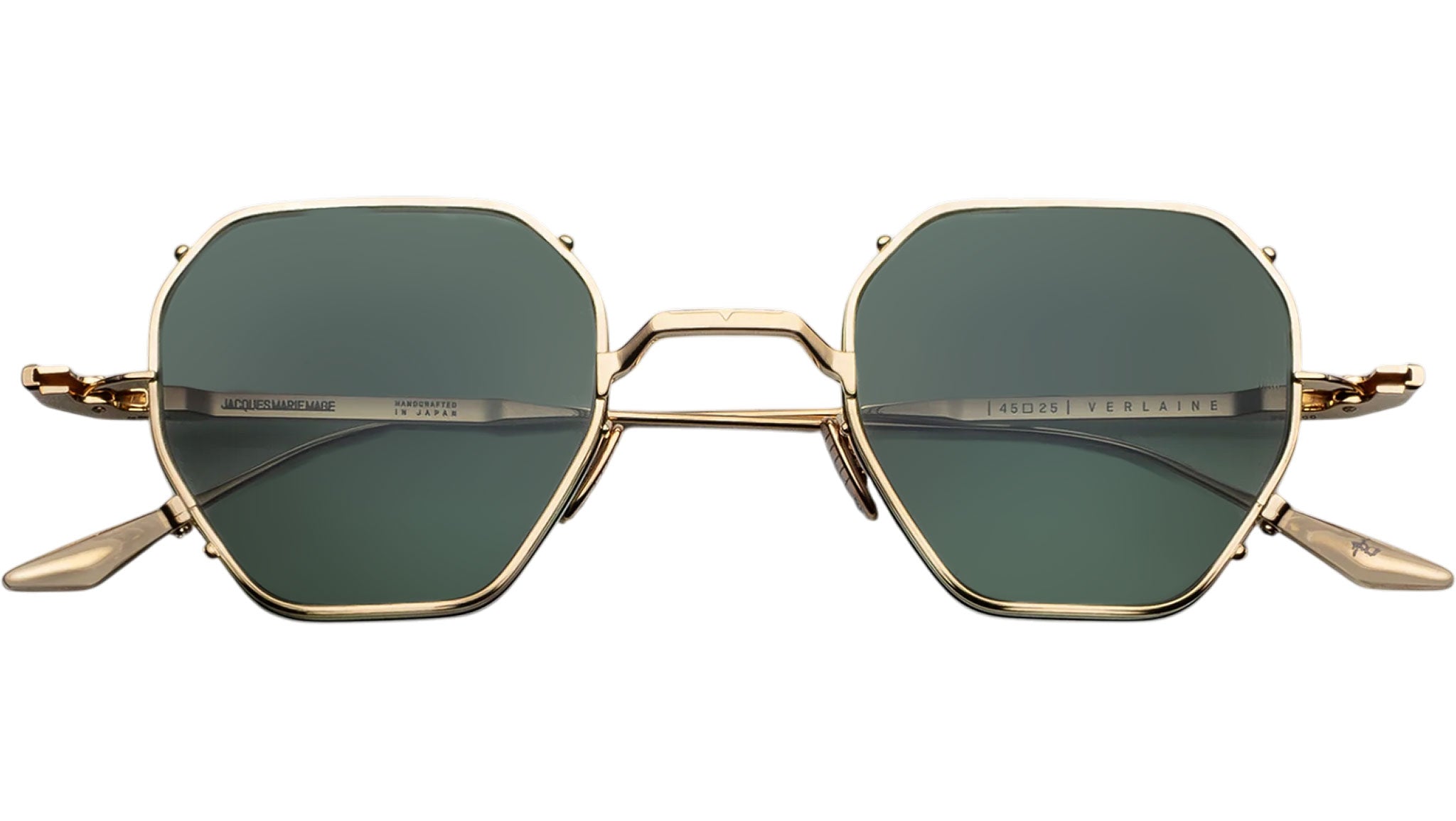 The Jacques Marie Mage Verlaine sunglasses are limited-edition titanium spectacles distinguished by an uncommon octagonal silhouette and a refined mid-century sensibility. Inspired by French poet Paul Verlaine and the evocative spirit of 19th-century symbolism, these sharply contoured frames balance structure with subtle sensitivity through vertical proportions and an architectural elegance. Double wire-rim construction, custom monoblock hinges, epoxy-embellished temples, and winged temple tips underscore the precision and nuance of the design, resulting in a sophisticated expression of contradiction, beauty, and cultivated individuality.