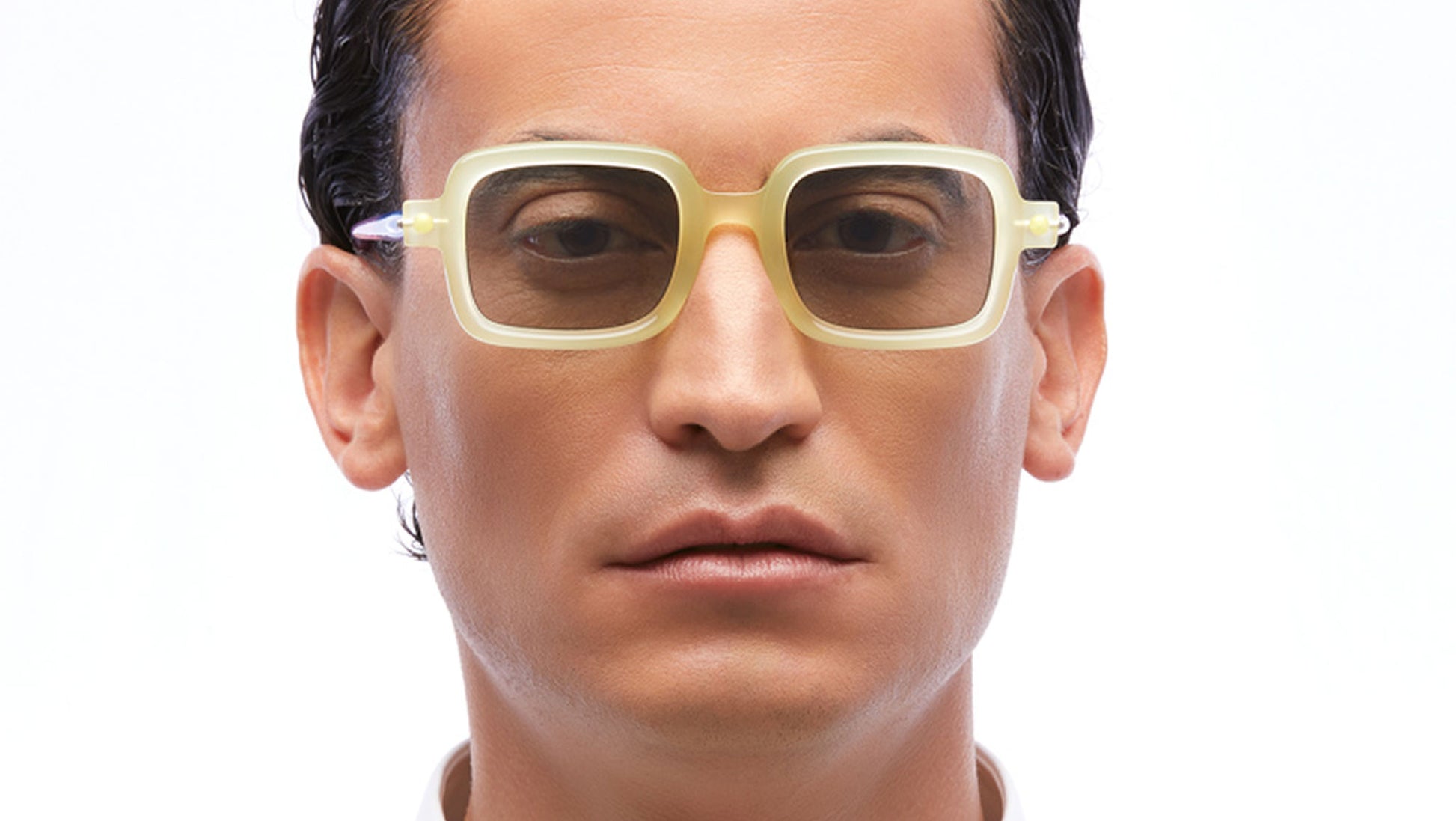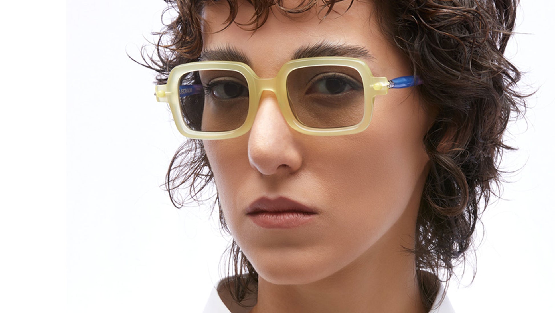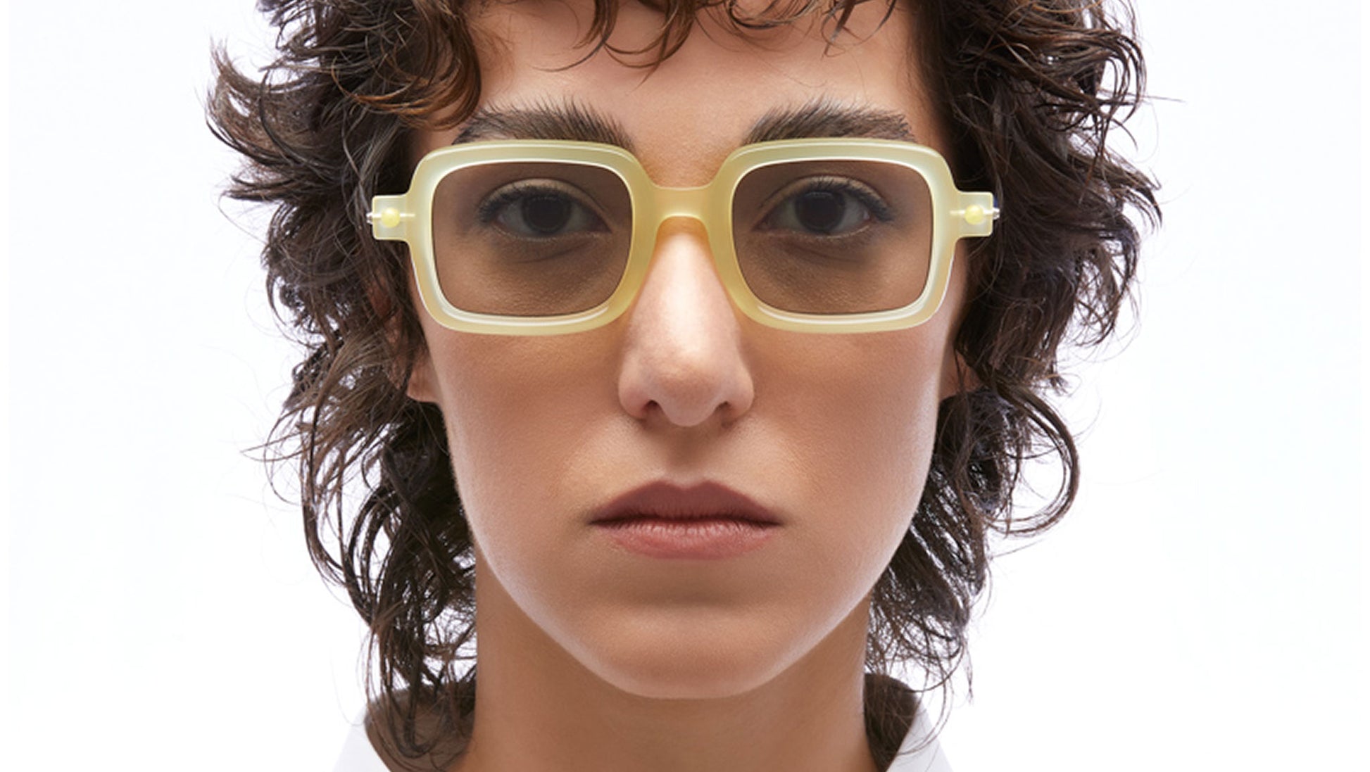 Gafas de sol Kuboraum modelo P2 YW. Kuboraum son máscaras que se diseñan en el rostro de sus portadores para resaltar su personalidad y carácter. Máscara es sinónimo de burla y juego. Las máscaras de Kuboraum son sinónimo de protección y refugio; son habitaciones cúbicas donde nos refugiamos, libres para vivir nuestra intimidad y mirar el mundo a través de dos lentes. Todas las máscaras están íntegramente soñadas en Berlín y hechas a mano en Italia.