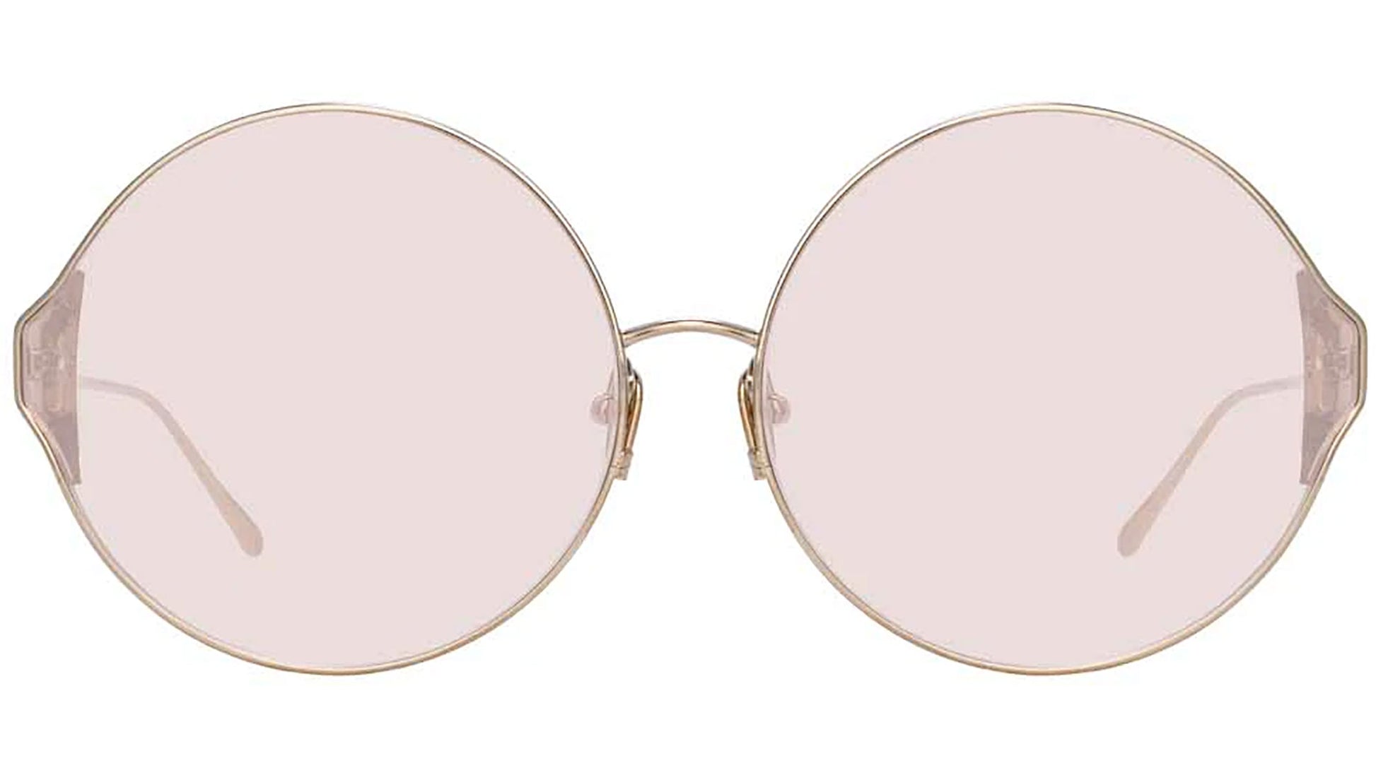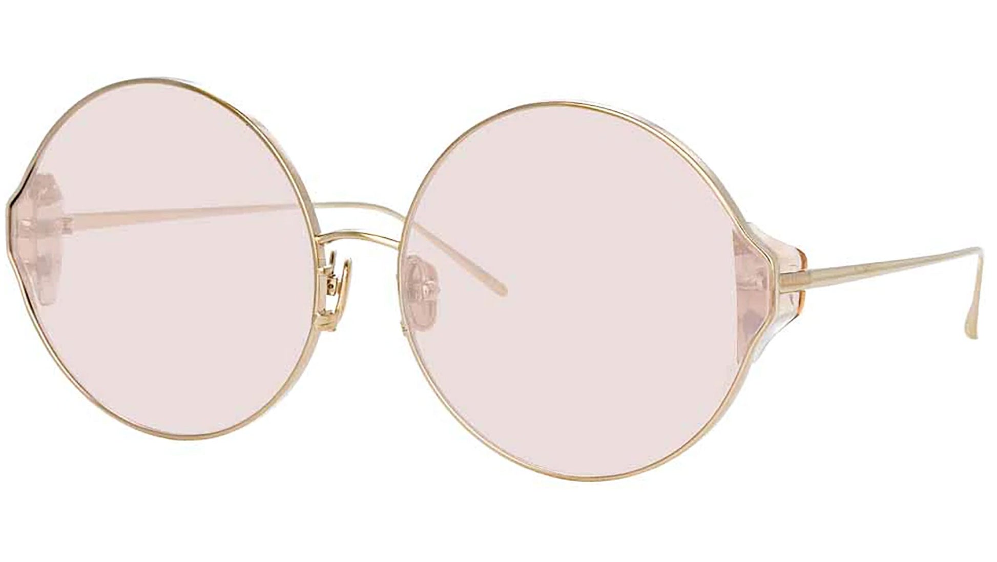 Canalizando la magia del circo, estas gafas de sol redondas CAROUSEL Linda Farrow dan vida a tu look. Confeccionados con titanio japonés bañado en oro claro de 18 a 22 quilates con lentes rosas, están realzados con un trozo de acetato ahumado en contraste en las esquinas. Lentes de nailon 100 % con protección UV. Montura de titanio y acetato con patillas de titanio. Hecho en Japón.