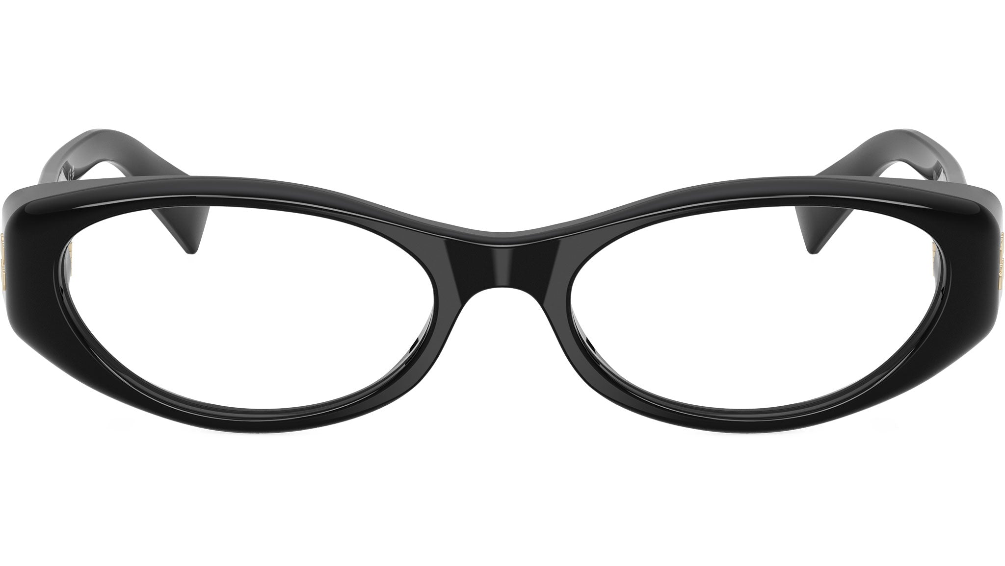 Gafas Miu Miu MU 03ZV 16K1O1 para mujer, con montura ovalada de acetato negro y lentes de muestra. Puente alto. Línea: Colección Principal. Código de estilo: 0MU 03ZV. Código de color: 16K1O1. Hechas en Italia. Distribuidor autorizado en línea de Miu Miu. Sus gafas incluyen el estuche y los accesorios originales, y cuentan con una garantía global de 12 meses.