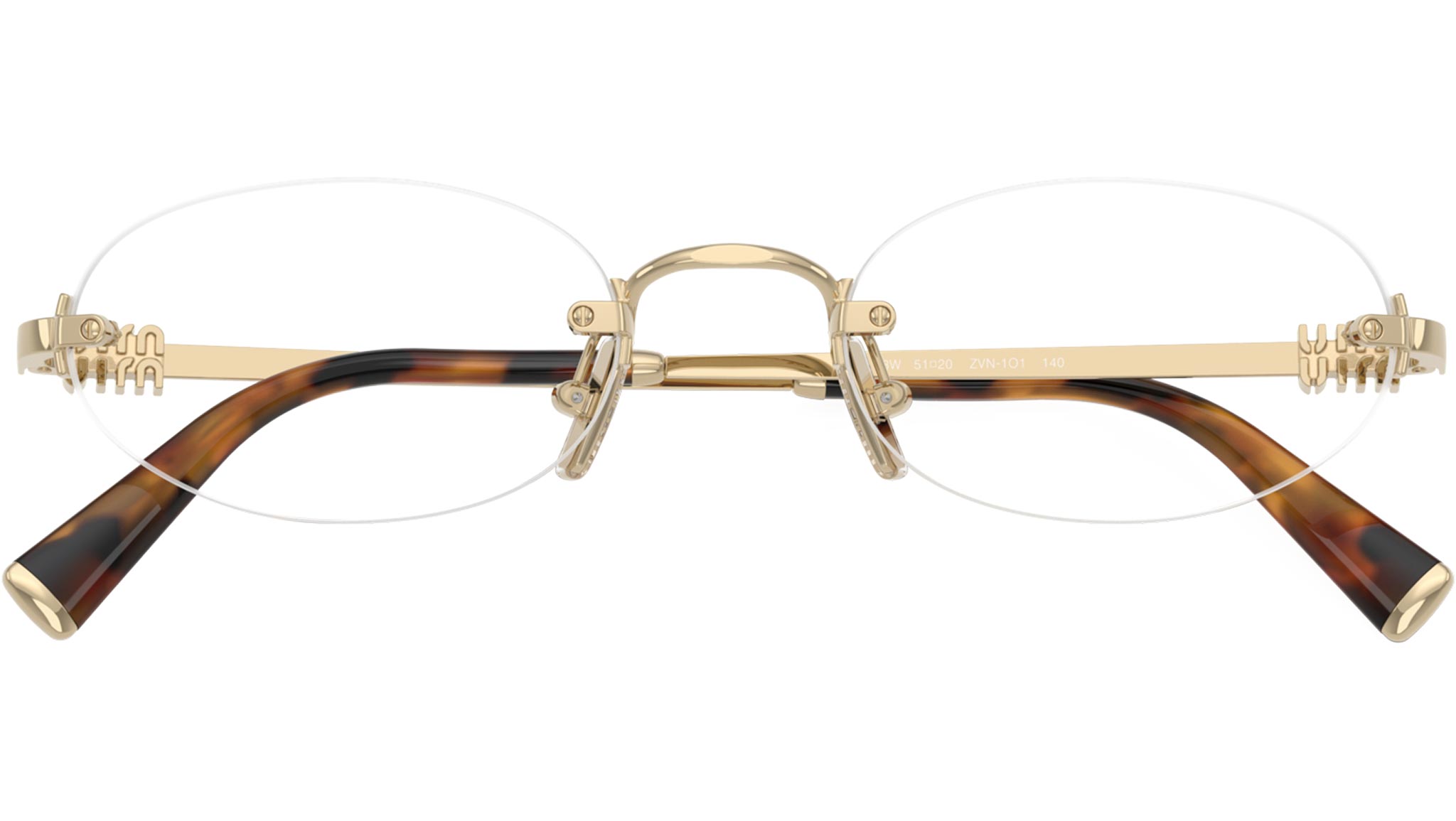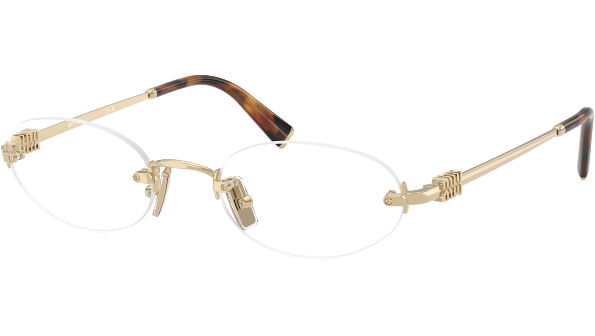 Gafas Miu Miu MU 53WV ZVN1O1 para mujer, con montura de metal ovalada en dorado pálido y lentes de muestra. Ajuste universal. Línea de marca: Miu Regard. Código de estilo: 0MU 53WV. Código de color: ZVN1O1. Fabricadas en Italia. Distribuidor autorizado en línea de Miu Miu. Tus gafas incluirán el estuche y los accesorios originales y están cubiertas por una garantía global de 12 meses.