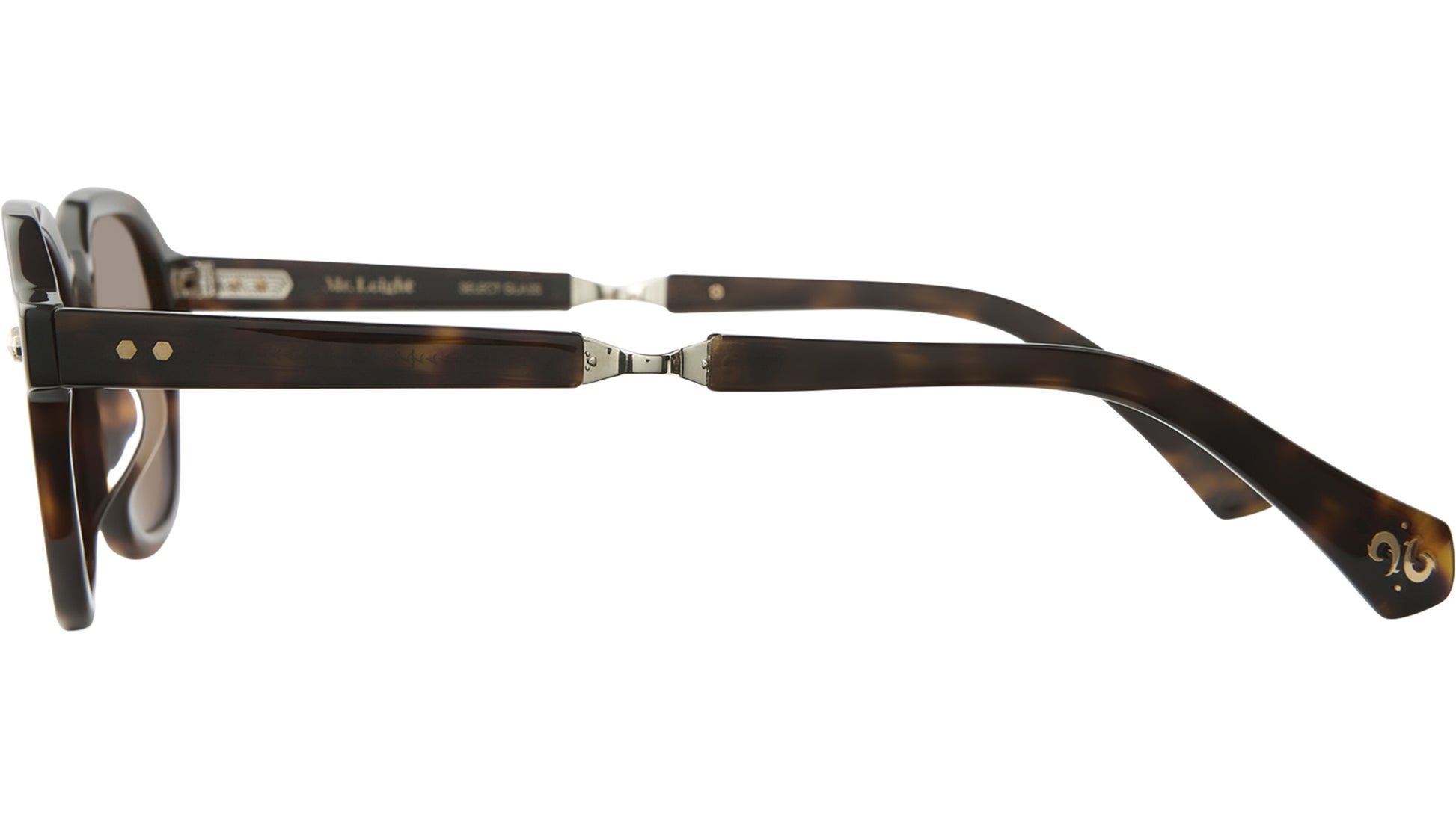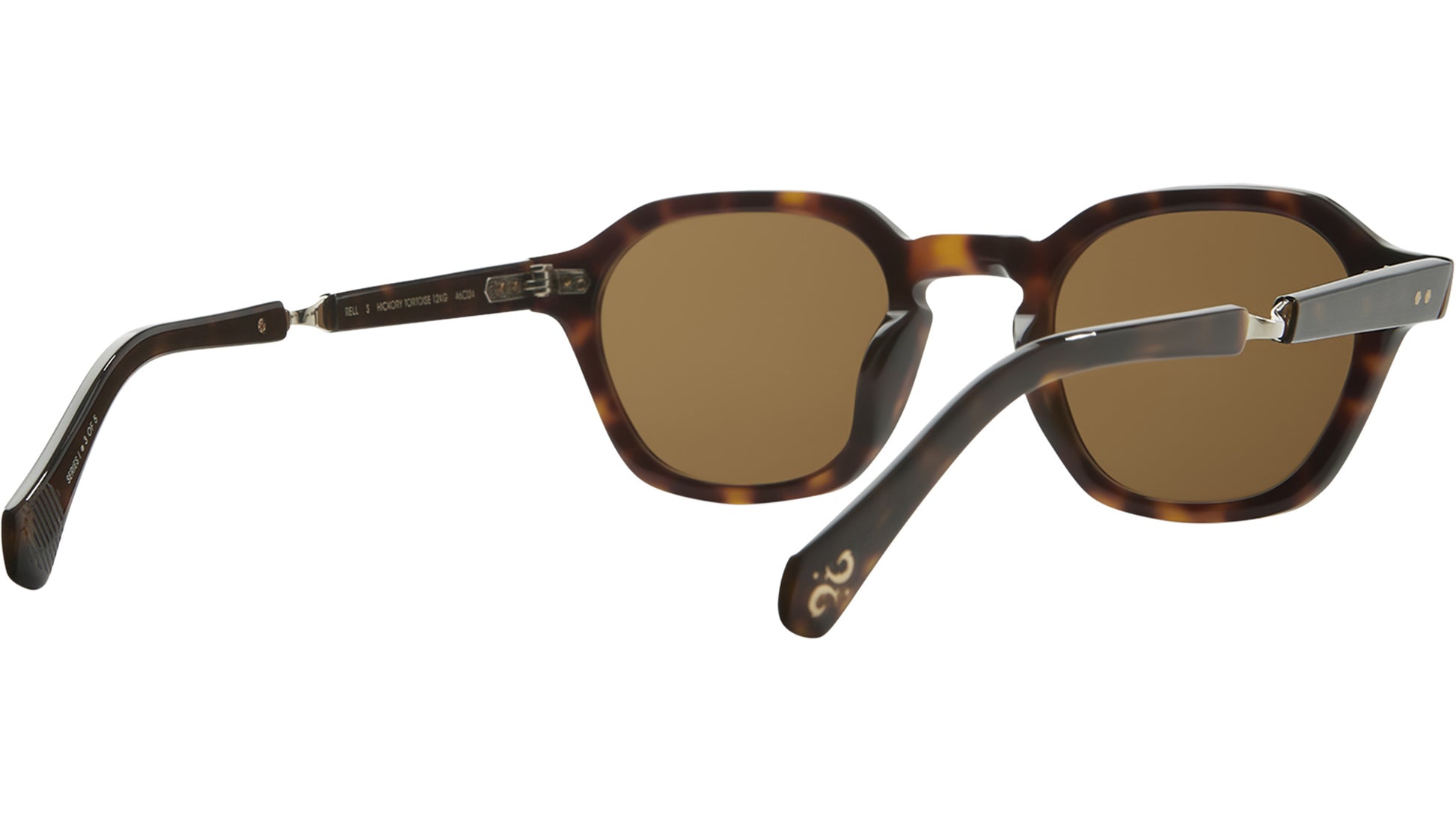 Mr. Leight Rell S sunglasses featuring hickory tortoise / 12k white gold geometric titanium frame and mojave brown lenses. The Rell model features an unconventional silhouette that pays homage to the nonconforming spirit of mid-20th century musicians and artists. Its geometric design is enhanced by striking color and lens pairings, complemented by intricate filigree artwork on the core wire. Notable features include Fish Hook metal decals on the outer temples, handcrafted construction in Japan, and Select Glass lenses that ensure clarity. The custom titanium Shark Teeth engraved metal core wire and 4 Base lens with backside anti-reflective coating provide both style and functionality. Additional elements such as the Vintage Diamond plaque, custom hexagon riveted pins at the temples, metal temple tips, and a keyhole bridge further elevate the design. A custom engraved 3-barrel hinge with an enamel-filled logo cap completes this piece, offering 100% UV protection. The unisex look makes it suitable for a wide range of wearers. Style code: ML2030. Color code: HKT-12KG/MOJBRN. Authorized Mr. Leight online reseller. Your glasses will include the original case and accessories and are covered by a 12-month global warranty.