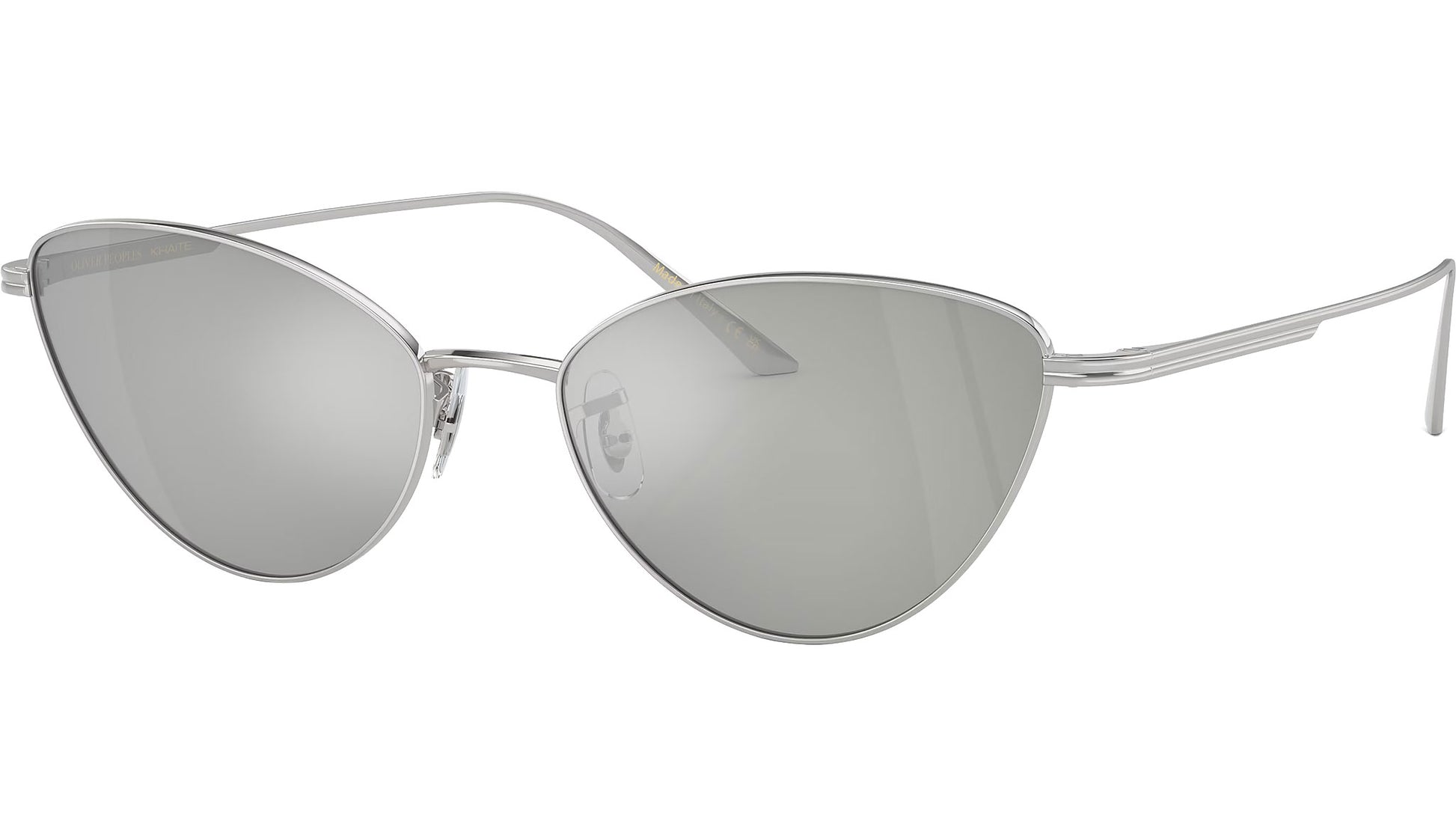 Presentamos la última incorporación a la colaboración de Oliver Peoples Khaite, las 1998C OV1328S, unas cautivadoras gafas de sol de metal con forma de ojo de gato. Este diseño presenta una extraordinaria forma de lente arqueada, acentuada por un diseño de varilla personalizado que refleja el exclusivo núcleo central que se encuentra en los estilos de acetato. La sorprendente combinación de atrevidas combinaciones de metal y lentes produce una estética poderosa y claramente femenina. Ideales para personas con rostros más pequeños, estas gafas de sol ofrecen estilo y comodidad.