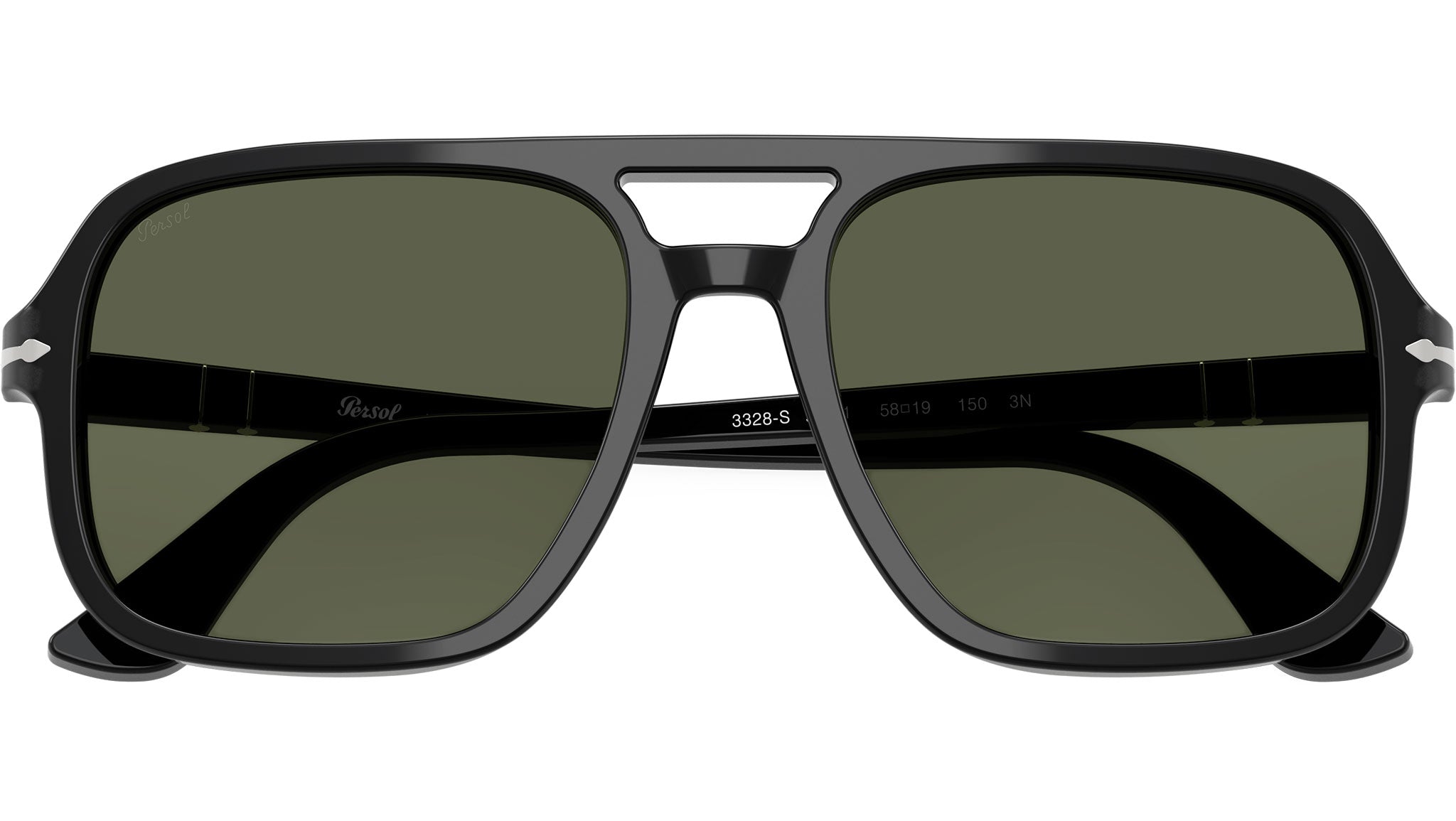 Persol sunglasses for men model PO3328S 95/31 featuring black acetate frame and green base 6 glass lenses. High bridge fit. Frame line: Officina. Brand code: 0PO3328S. Color code: 95/31. Authorised Persol Eyewear Online Reseller. Your glasses will come including the original case and accessories and will be covered by 12 month global warranty.