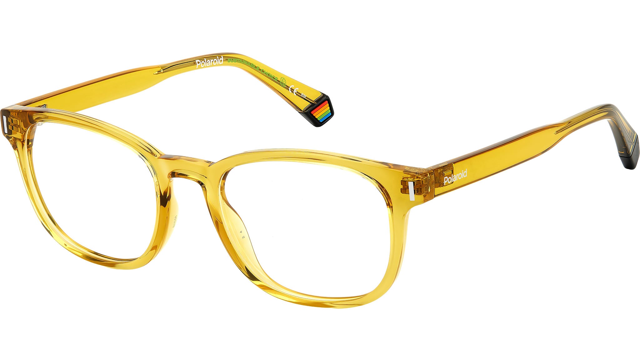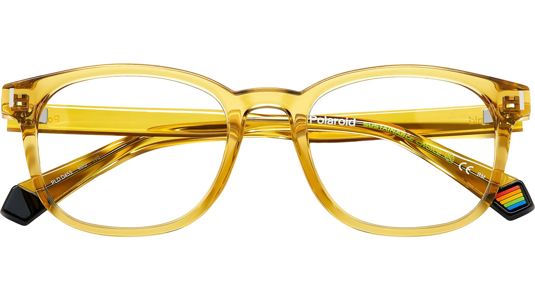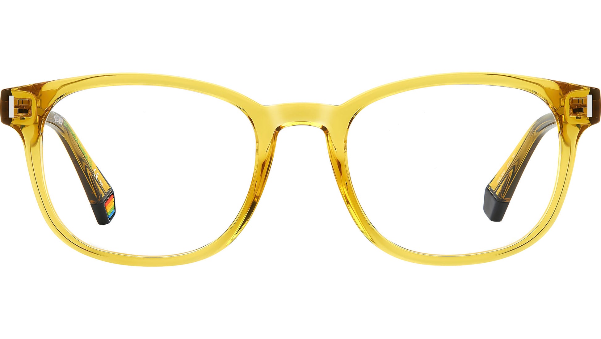 Gafas Polaroid PLD D453 40G para hombre, con montura rectangular amarilla de poliamida ecológica y lentes de demostración. Estas gafas para hombre presentan una montura ligeramente cuadrada y patillas que se estrechan en las orejas, adornadas con las originales inserciones de goma arcoíris de Polaroid en los extremos. Están fabricadas en poliamida ecológica, un tipo de plástico parcialmente derivado del aceite de ricino, una opción sostenible de la marca. Remaches metálicos decoran las esquinas superiores del frente. Línea de la marca: Cool. Código de estilo: 105810. Código de color: 40G. Distribuidor autorizado en línea de Polaroid. Sus gafas incluyen el estuche y los accesorios originales, y cuentan con una garantía global de 12 meses.