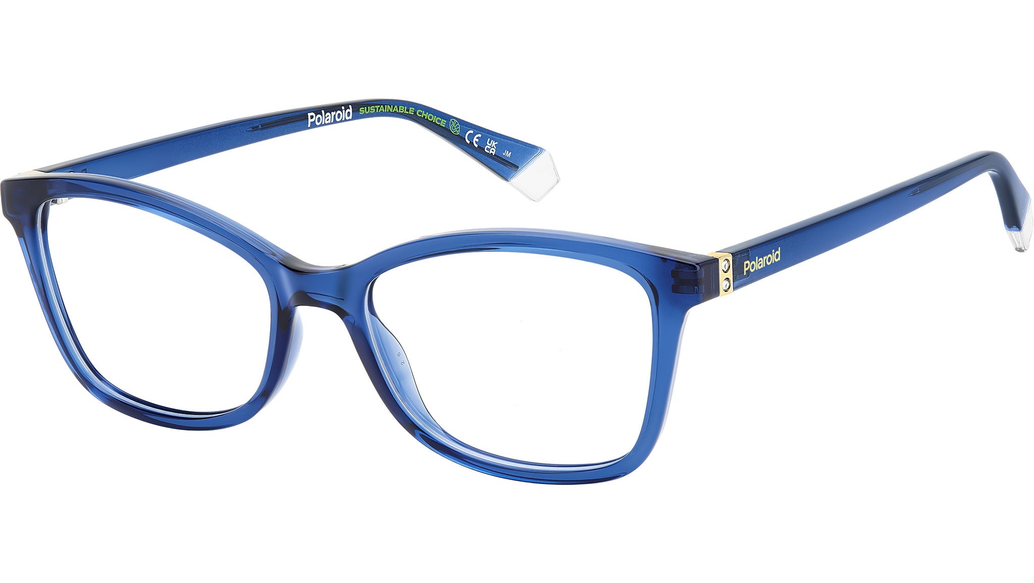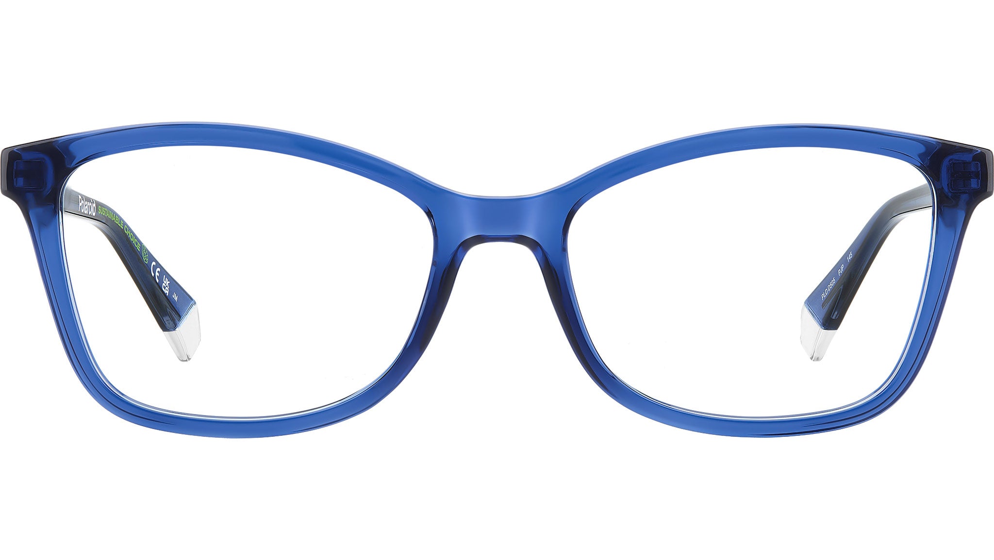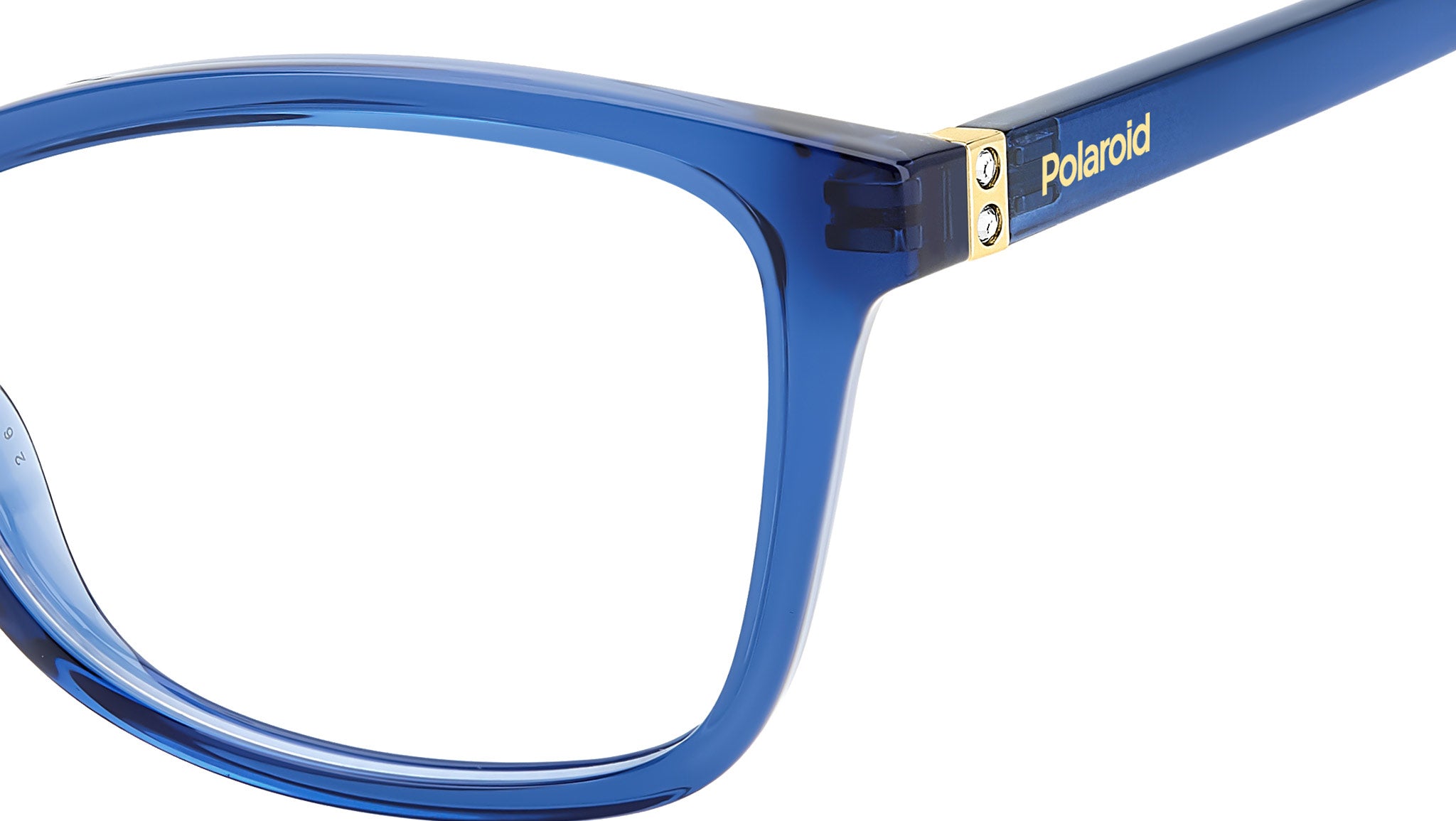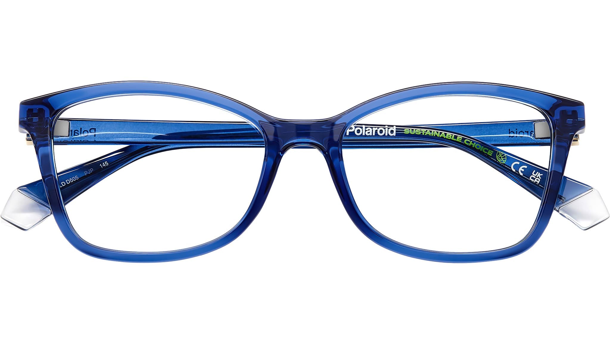 Gafas Polaroid PLD D505 PJP para mujer, con montura rectangular azul de ecopoliamida y lentes de demostración. Polaroid ha ideado nuevas maneras de hacer que sus gafas sean más respetuosas con el medio ambiente, y este modelo para mujer se mantiene fiel a ese compromiso. En ecopoliamida, un tipo de plástico de origen natural, la montura refleja las decisiones sostenibles de la marca. Además, presenta líneas exquisitamente femeninas, realzadas con un detalle de metal y pedrería. El estampado "Polaroid" en las patillas y los terminales en contraste completan este accesorio para el día a día. Línea de la marca: Essential. Código de estilo: 107594. Código de color: PJP. Distribuidor autorizado en línea de Polaroid. Sus gafas incluyen el estuche y los accesorios originales, y están cubiertas por una garantía global de 12 meses.